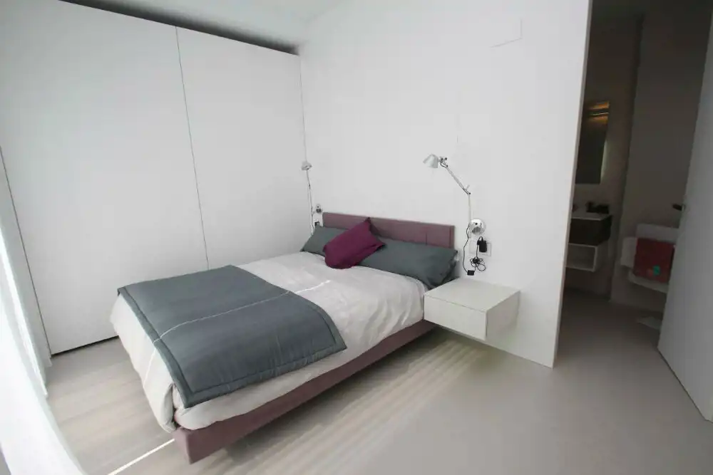 Na pierwszym piętrze znajdziemy dużą sypialnię z łazienką i wyjściem na słoneczny taras, kolejną sypialnie i łazienkę. Wewnętrzne schody prowadzą na ogromny taras-solarium o powierzchni 58 m2.