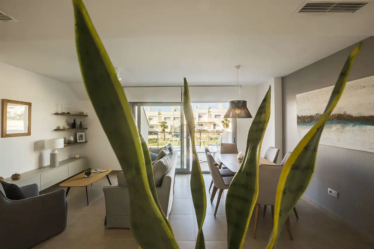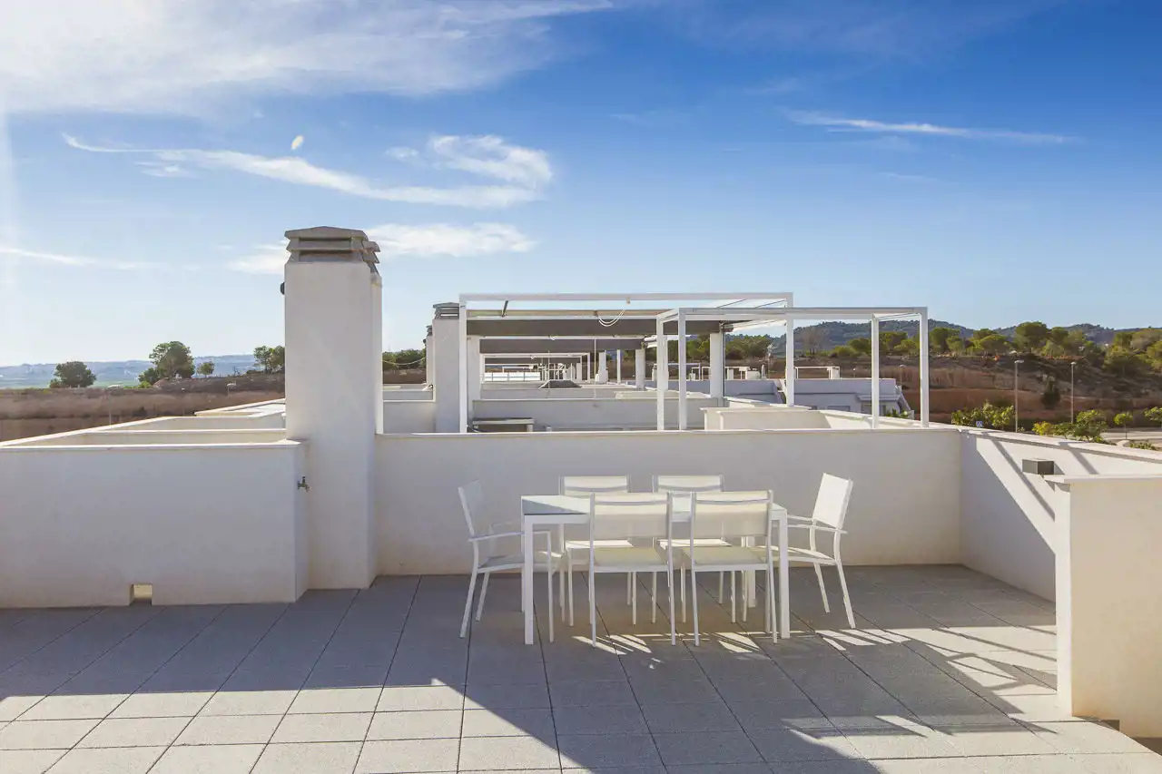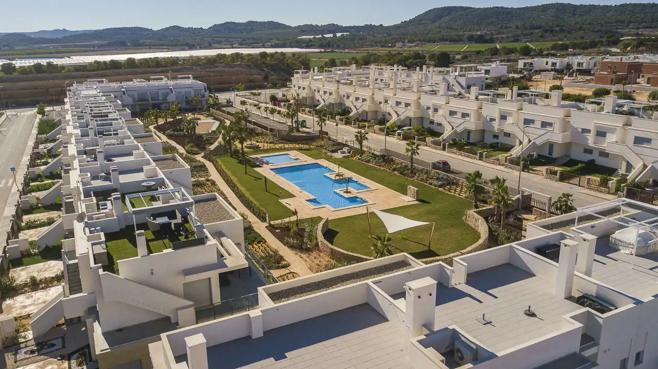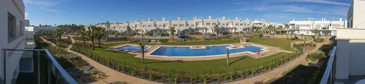 Usytuowanie w bezpośrednim sąsiedztwie pola golfowego, z pięknymi widokami na góry i zieloną okolicę. Lokalizacja między dwoma typowo hiszpańskimi miastami San Miguel i Los Montesinos, jednak w odległości spaceru są bary, restauracje, supermarket, apteka, a ponadto tereny sportowe z kortami tenisowymi.