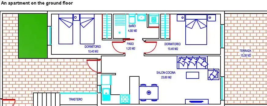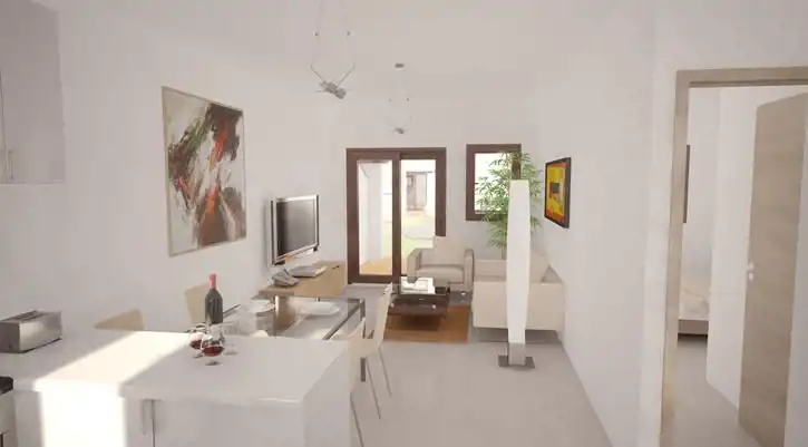 Apartament znajduje się w małym, cichym kompleksie ze wspólnym basenem, częścią rekreacyjną dla dzieci oraz ogrodem tropikalnym. W apartamencie znajdują się dwie sypialnie, łazienka, salon z jadalnią oraz kuchnia w stylu amerykańskim. Dodatkowo znajduje się taras. Baseny termalne znajdujące się w Mar Menor (Mniejsze Morze) to popularne centra uzdrowiskowe (SPA), które oferują zarówno zabiegi lecznicze, jak i odnowę biologiczną. Jest to idealne miejsce zarówno na odpoczynek jak i na poprawę korzyści zdrowotnych.