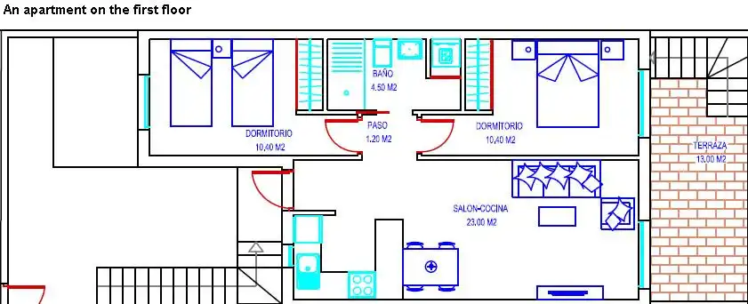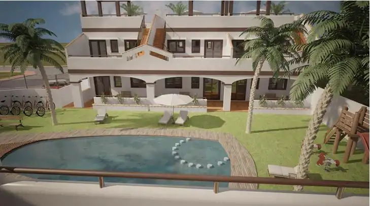 Apartament znajduje się w małym, cichym kompleksie ze wspólnym basenem, częścią rekreacyjną dla dzieci oraz ogrodem tropikalnym. W apartamencie znajdują się dwie sypialnie, łazienka, salon z jadalnią oraz kuchnia w stylu amerykańskim. Dodatkowo znajduje się taras oraz solarium na dachu. Baseny termalne znajdujące się w Mar Menor (Mniejsze Morze) to popularne centra uzdrowiskowe (SPA), które oferują zarówno zabiegi lecznicze, jak i odnowę biologiczną. Jest to idealne miejsce zarówno na odpoczynek jak i na poprawę korzyści zdrowotnych. Do ceny należy doliczyć 4% VAT.