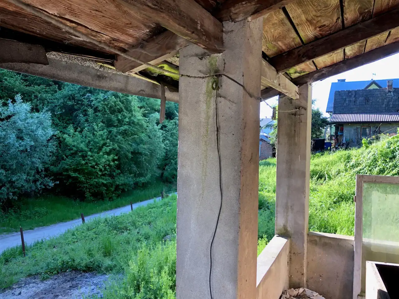Budynek zbudowany w latach 80-tych, z podpiwniczeniem oraz małym poddaszem. W budynku znajduje się pokój, miejsce na aneks kuchenny, ganek oraz taras od strony południowo-wschodniej. Dodatkowo woda z istniejącej studni. Dach kryty papą.