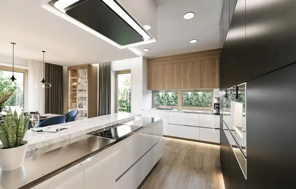 ☑️ przedpokój, kotłownia, kuchnia, pomieszczenie gospodarcze, spiżarnia, wc, hall, salon + 3 sypialnie, łazienka (lub sauna), garderoba, korytarz, garaż dwustanowiskowy,