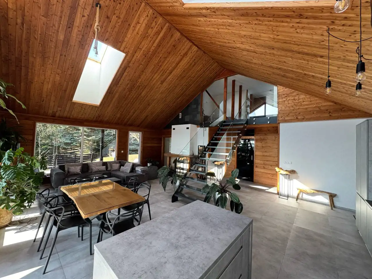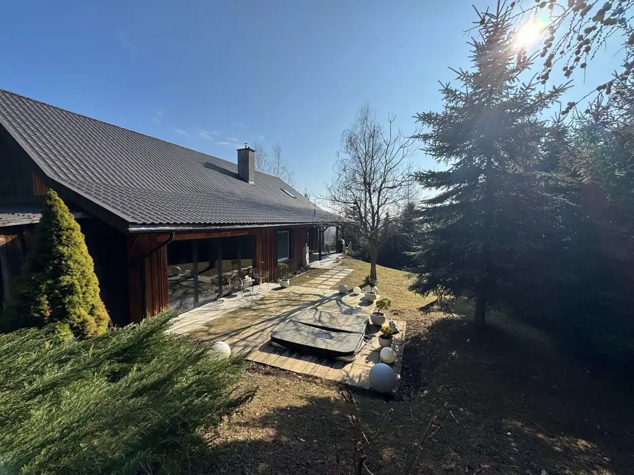 Przestawiamy na sprzedaż dom który łączy tradycję wiejskiej chaty z nowoczesnością, duże przeszklenia dają możliwość obserwowania z wnętrza otaczającą przyrodę wraz z zmieniającą się pogodą.
