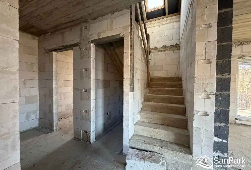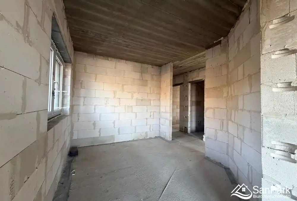 Dom w stanie umożliwiającym indywidualną aranżację, co pozwala na pełne dopasowanie wnętrza do potrzeb przyszłych właścicieli.