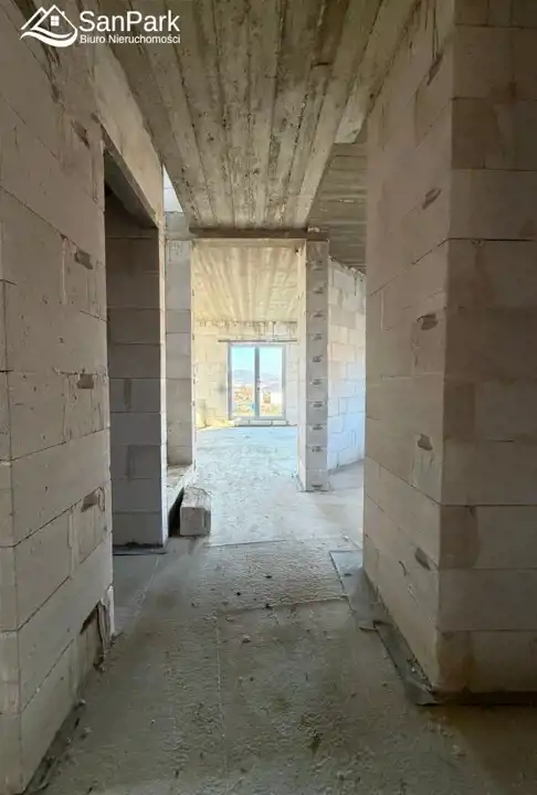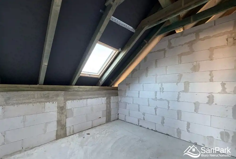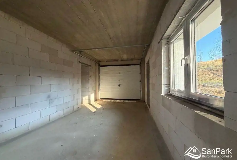 Dom w trakcie budowy, co daje możliwość wykończenia go zgodnie z własnym gustem i potrzebami. Garaż w bryle budynku zapewnia wygodę i funkcjonalność na co dzień.