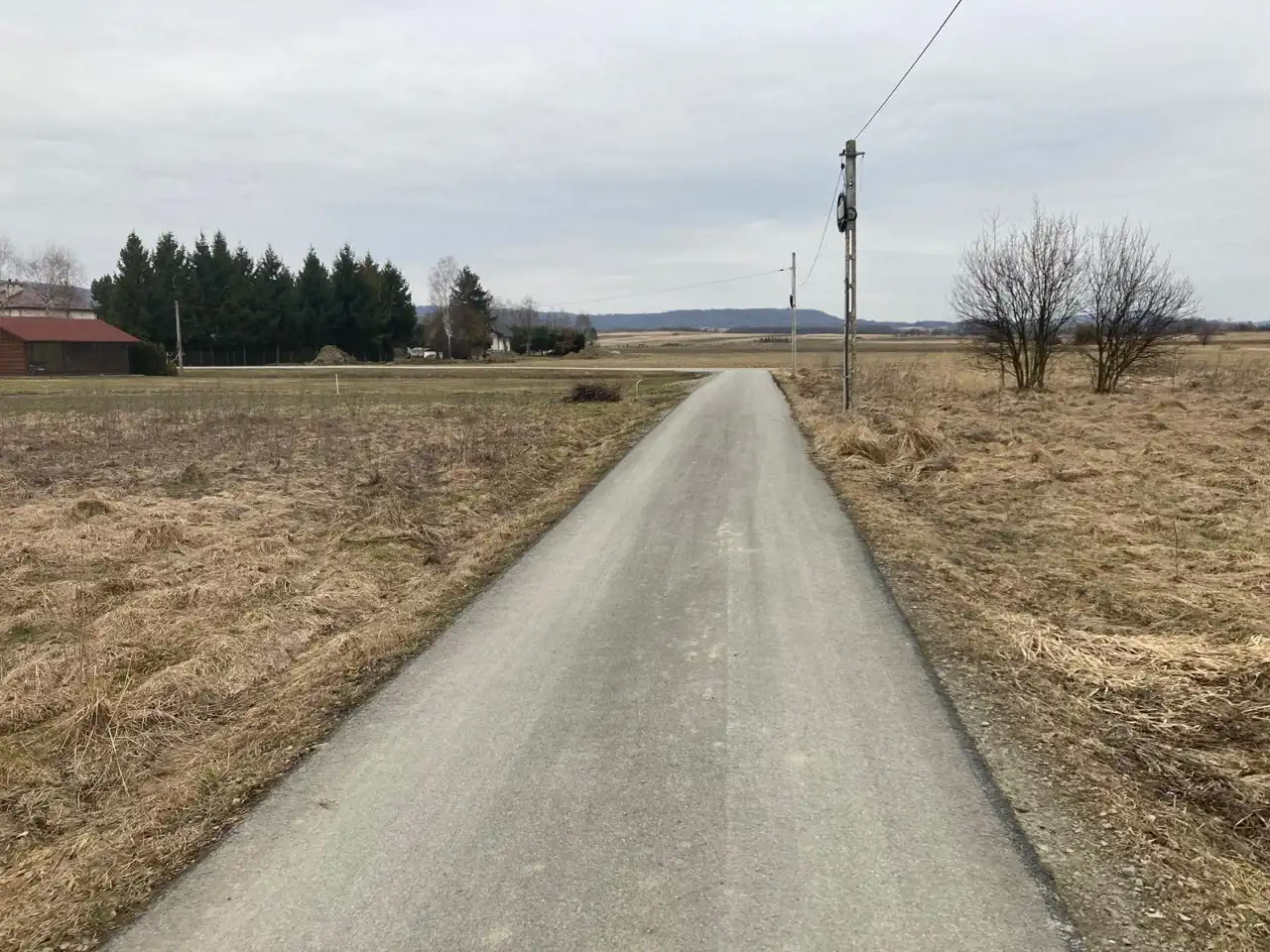 Media: sieć na działce - elektryczna, wodociągowa i światłowód, sieć kanalizacja i gazowa w pobliżu.