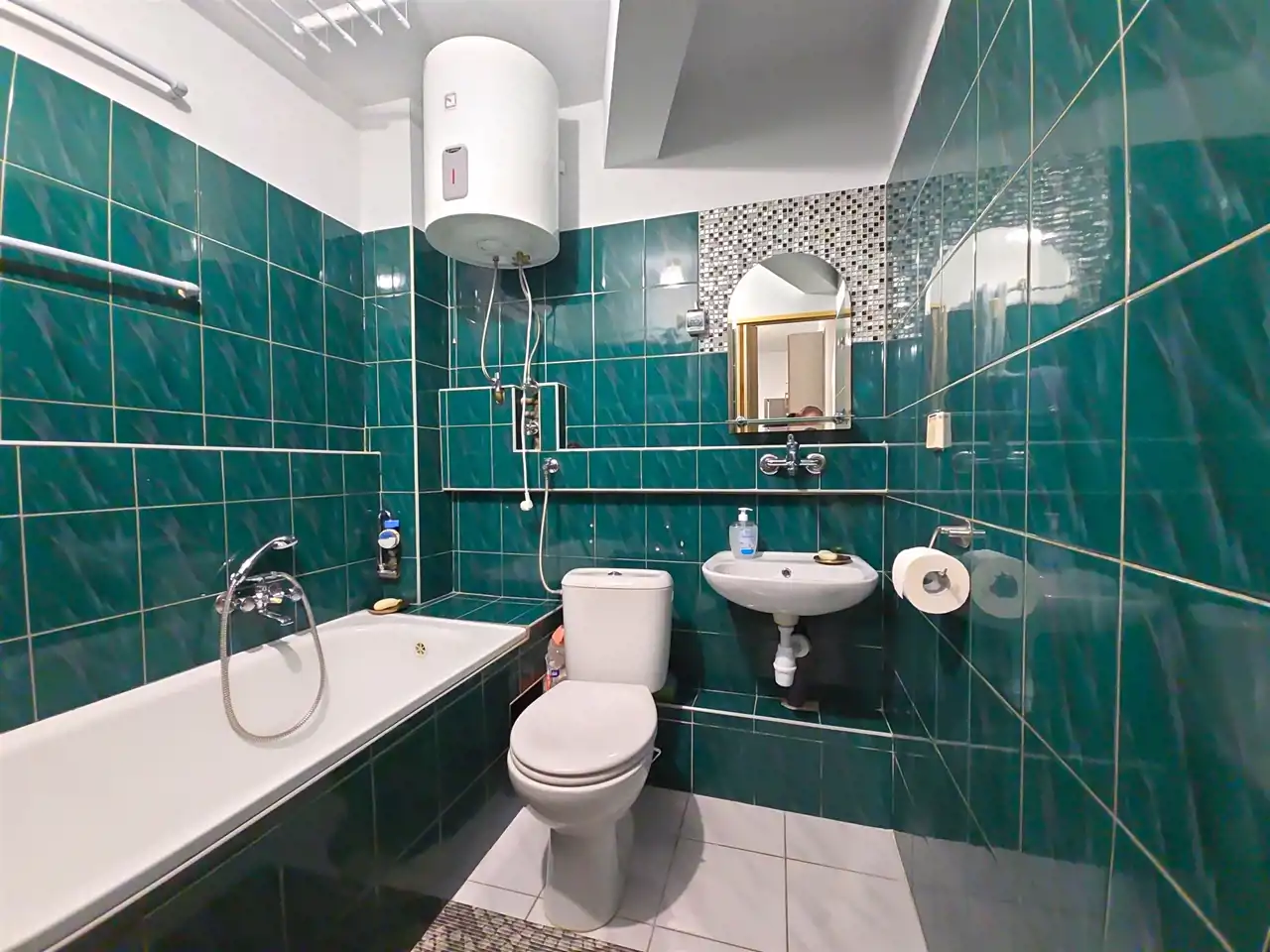 - Media Ogrzewanie: C.O. miejskie; Woda: tak-podgrzewacz elektryczny; Gaz: brak