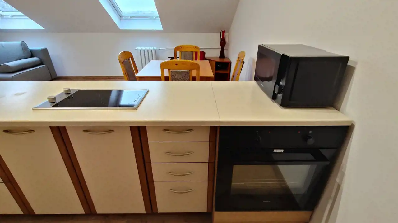 ☑️ aneks kuchenny z płytą grzewczą, piekarnikiem, pralką, lodówką, mikrofalówką, zmywarką