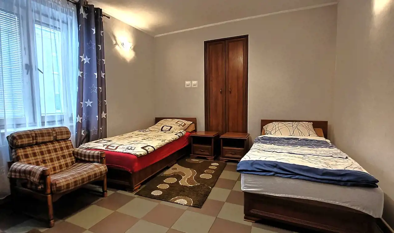 ☑️ Poziomy 1 i 2 - osobna klatka schodowa stwarzająca warunki pod instalację windy. W sumie 8 w pełni wyposażonych pokoi od 2 - osobowych po 4 - osobowe. 6 pokoi z prywatnymi łazienkami, ogólnodostępna kuchnia, toaleta i łazienka, dwa małe pomieszczenia gospodarcze do składowania pościeli.