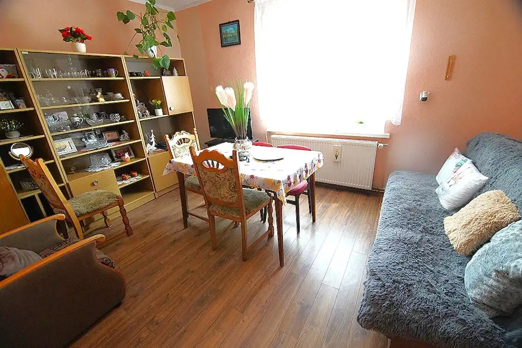 ATUTEM MIESZKANIA jest, że jest BEZCZYNSZOWE, ma PRZYNALEŻNY OGRÓDEK PRZYDOMOWY, oraz 1/2 udziału w pozostałym podwórku o powierzchni 0,08 ha.