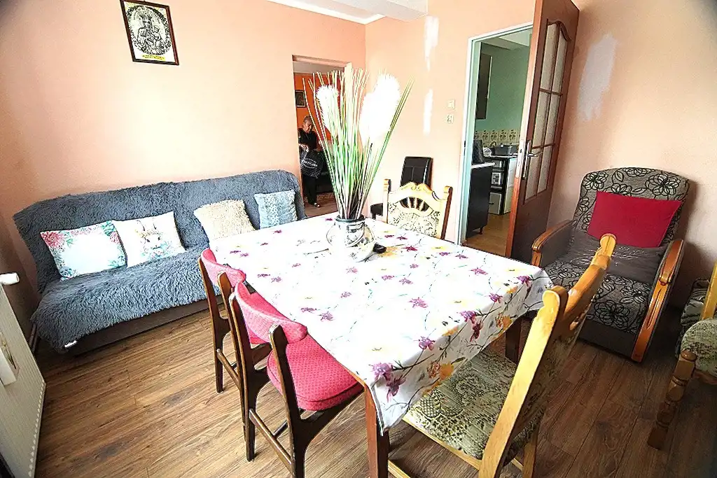 Stolarka okienna PCV, na podłogach panele i terakota, ściany malowane, ogrzewanie i ciepła woda z pieca gazowego dwufunkcyjnego. Mieszkanie bardzo słoneczne.