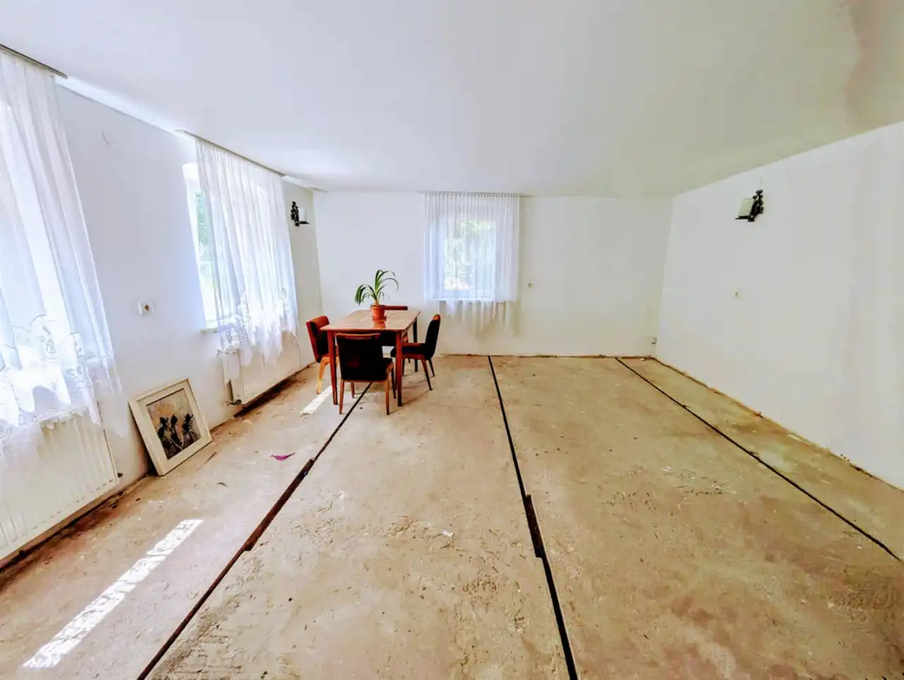 Pozostało położenie nowych płytek/paneli, wyposażenie kuchni oraz montaż nowego pieca. Nieruchomość obejmuje 2 sąsiadujące ze sobą działki o łącznej powierzchni 3367 m2, które można dowolnie zaadaptować na część rekreacyjną, ogród warzywny i sad.