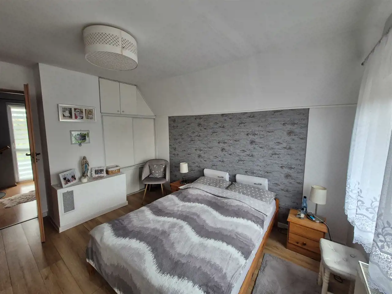 Dom parterowy z użytkowym poddaszem składa się z czterech pokoi , jasnej dużej kuchni, dwóch łazienek , wiatrołapu, piwnicy , strychu oraz tarasu.