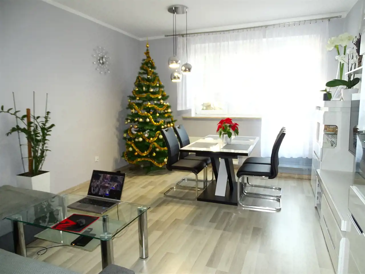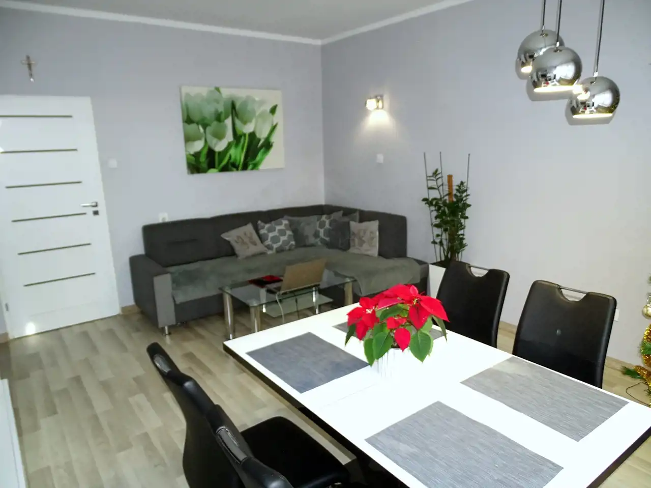 - na podłogach gres i panele,