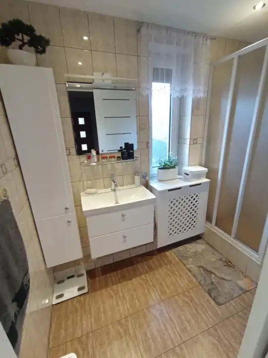 Obie kondygnację oraz znajdujący się na posesji sklep spożywczy ogrzewa jeden piec najnowszej generacji na eko – groszek, usytuowany w kotłowni w piwnicy budynku. Tuż obok znajduje się też duży warsztat i garaż jednostanowiskowy. Budynek posiada rolety zewnętrze w całym budynku - poza dwoma oknami.