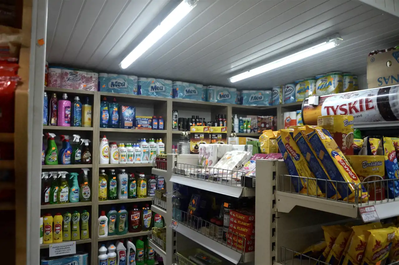 - oprócz części sklepowej budynek posiada 2 magazyny, pomieszczenie socjalne - biuro, pomieszczenie na opakowania i toaletę,