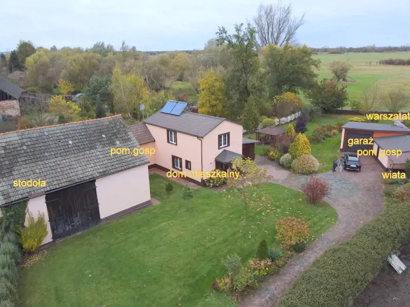 (warsztatem spawalniczym, dwoma garażami i wiatą, przestronną stodołą do adaptacji, pomieszczeniem gospodarczym)