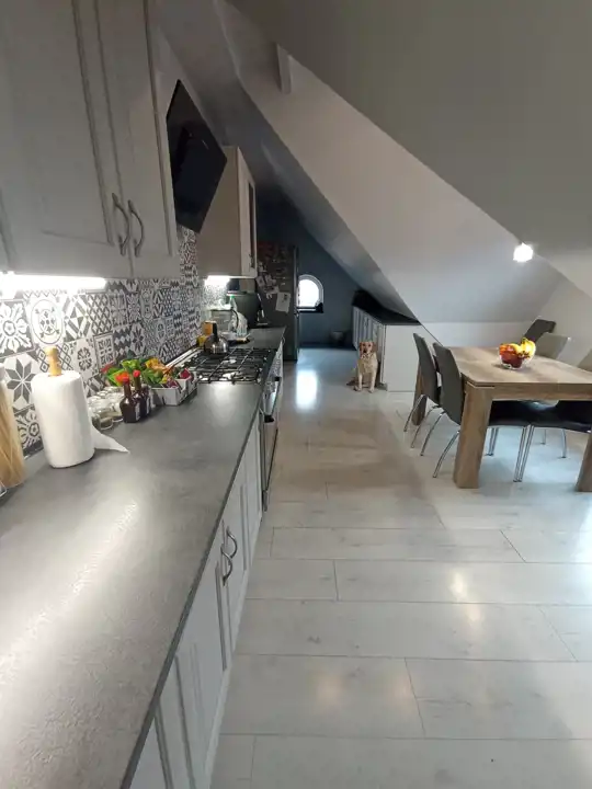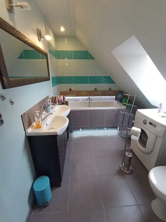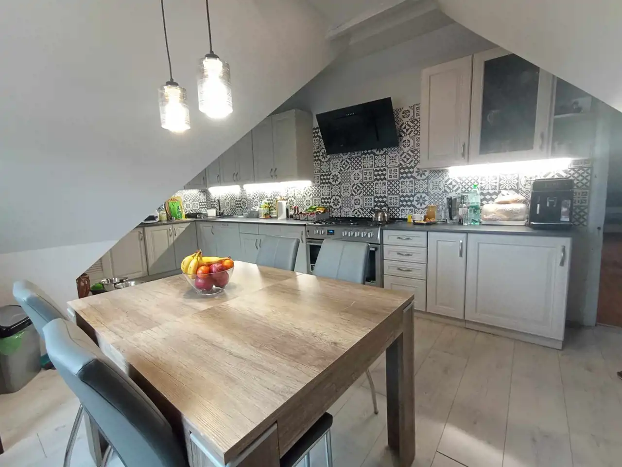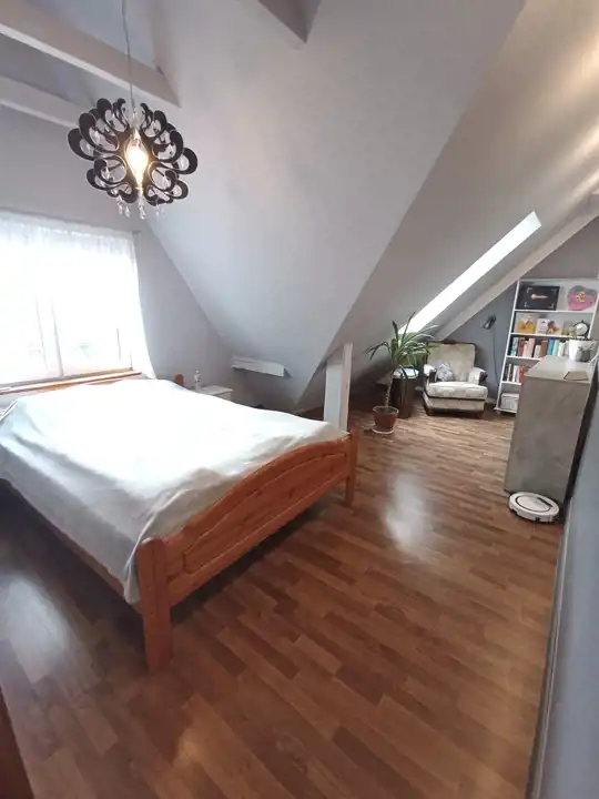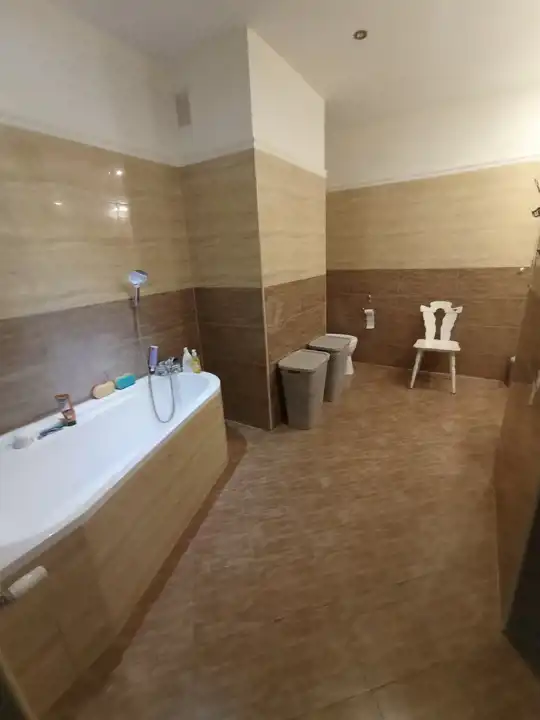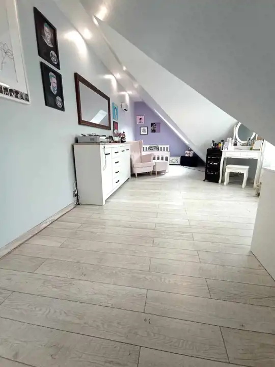 Nieruchomość o pow. ok. 270 m2 podzielona jest na dwa oddzielne lokale mieszkalne – jeden na parterze o pow. 180 m2, a drugi na pierwszym piętrze ze skosami.