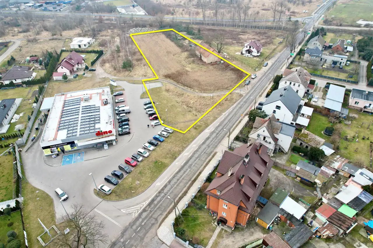W bezpośrednim sąsiedztwie znajduje się market Dino oraz duże osiedle mieszkaniowe, co zapewnia wysoką widoczność i dostępność dla potencjalnych klientów.