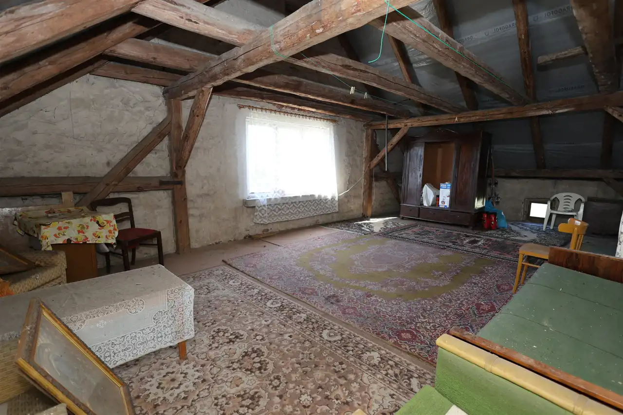 Budynek mieszkalny -pow. użyt. 110,5 m2 + poddasze (około 140 m2) + piwnica.