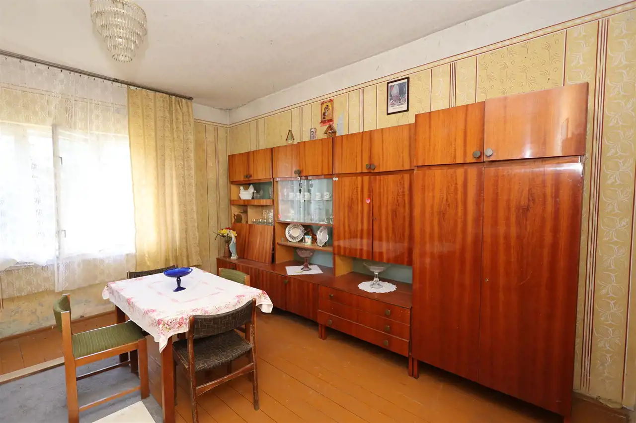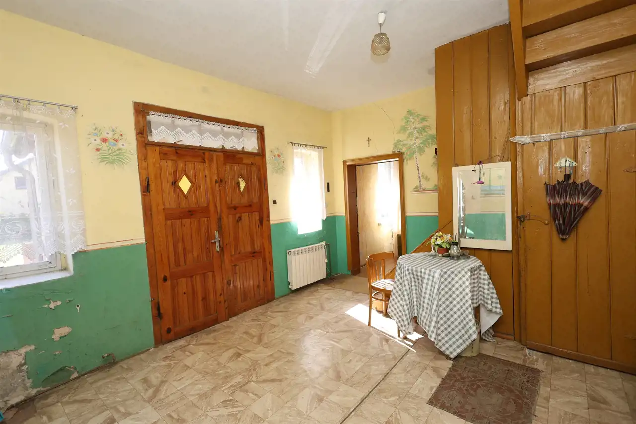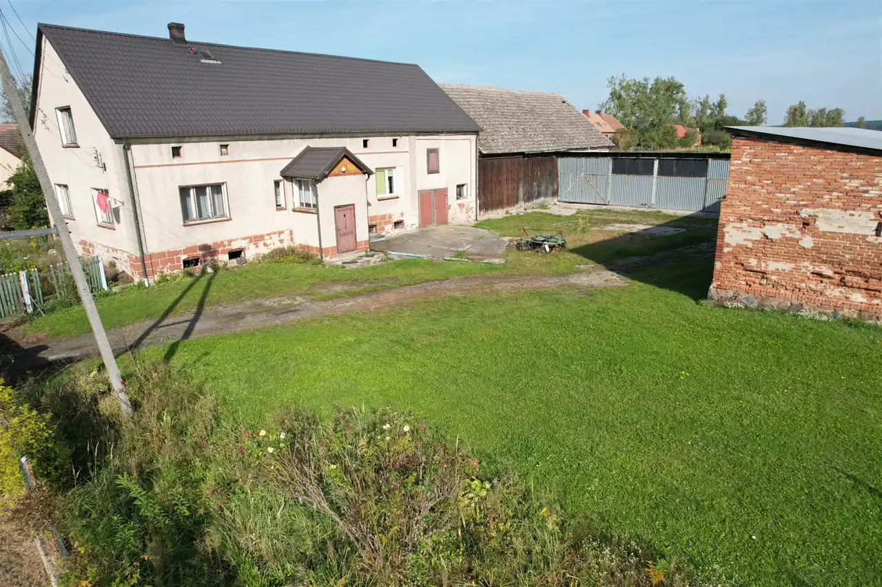 W skład nieruchomości wchodzi budynek mieszkalny, dwa budynki gospodarcze oraz wiata. Całość położona na 20 arowej ogrodzonej działce, przy drodze asfaltowej.