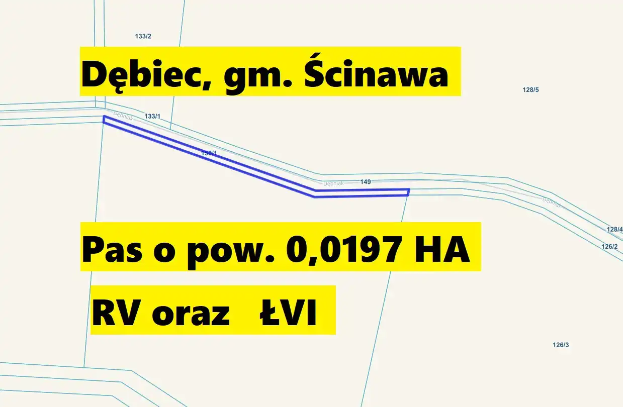 2. Grunt rolny nr 150/1 oznaczony jako R V i Ł VI o pow. 0,0197 HA (cienki pas)