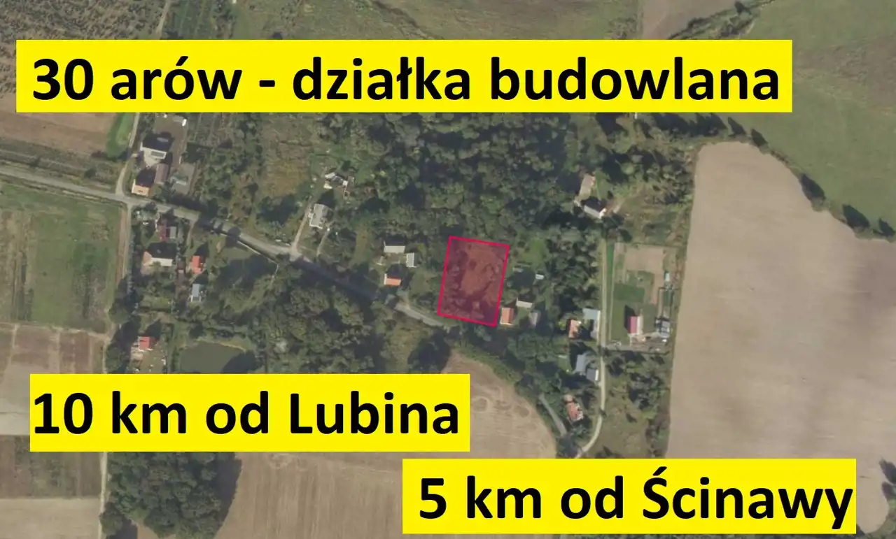 Na sprzedaż działka budowlana o pow. 30 arów położona w spokojnej miejscowości - Dąbrowa Środkowa, położonej zaledwie 5km od Ścinawy i 10 km od Lubina.