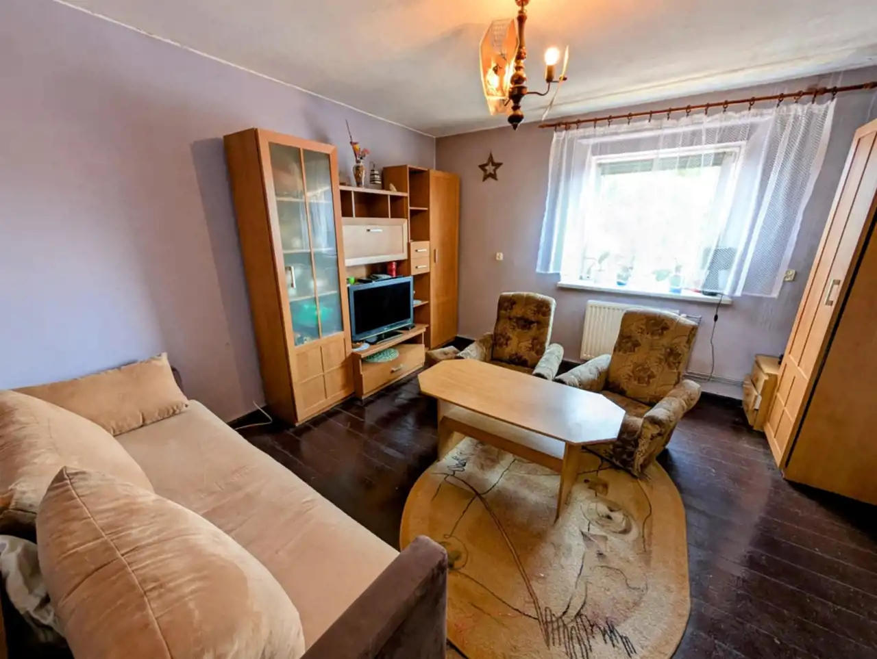 Budynek niedawno miał wymieniony dach, a koszty modernizacji spłacane są w czynszu, który wynosi około 580 zł. Atutem nieruchomości jest spokojna okolica i szybki wyjazd na Lubin.
