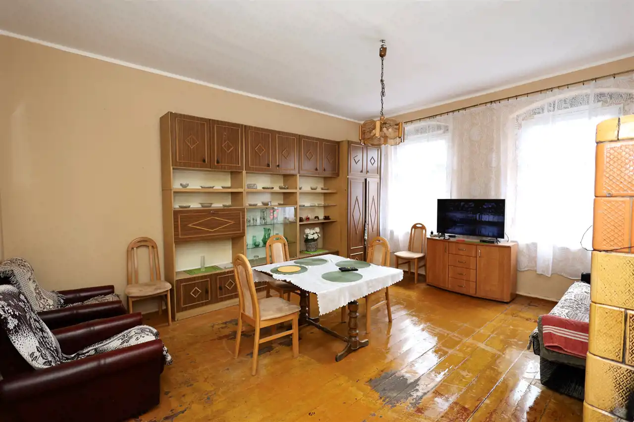 - Media Ogrzewanie: piec kaflowy; Woda: bojler; Gaz: brak