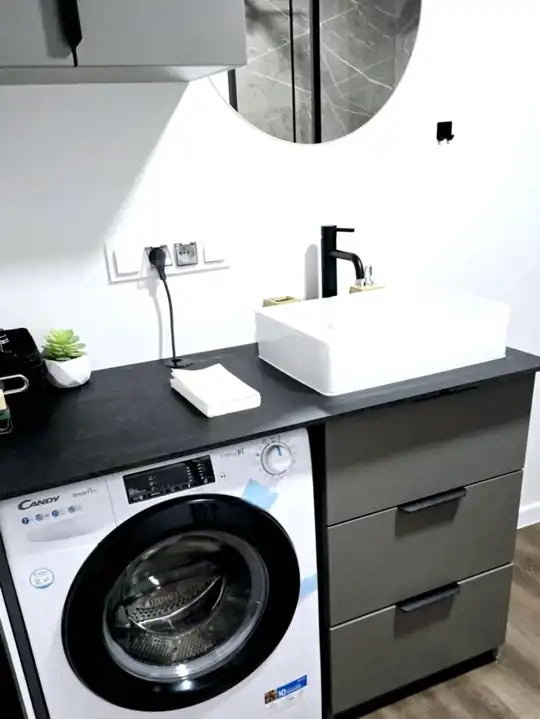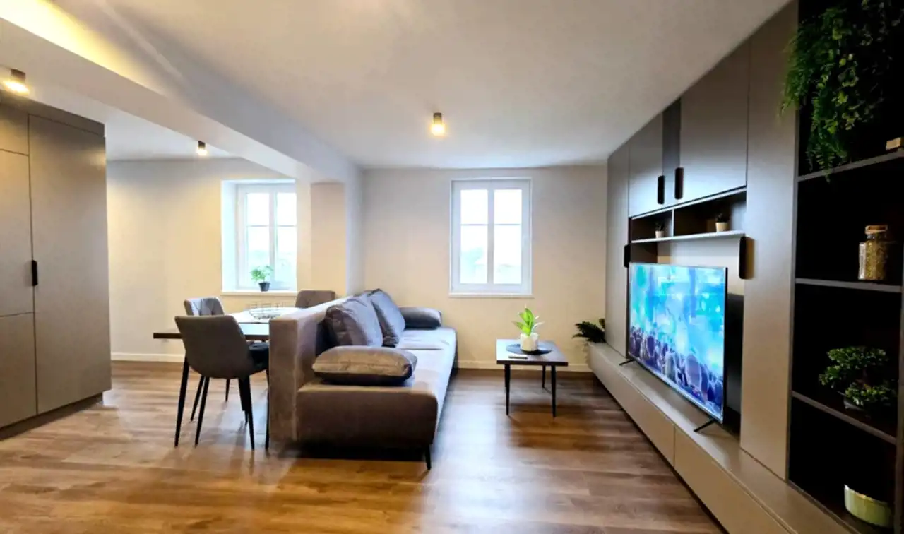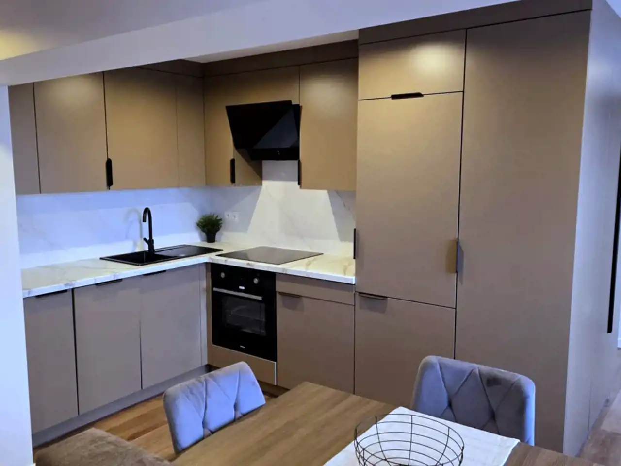 W cenie nieruchomości kompletne, nowe wyposażenie AGD i RTV (Telewizor Led 55 cali 4K, lodówka w zabudowie Amica, pralka Candy, płyta indukcyjna Electrolux, piekarnik Amica, zmywarka Beko, okap, Bojler Ariston Velis WiFi 100) oraz wyposażenie meblowe na wymiar (kuchnia, salon, łazienka i łazienka).