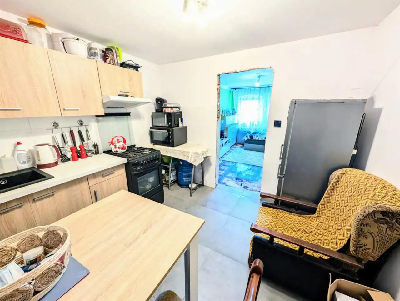 Mieszkanie położone jest na pierwszym piętrze budynku i składa się z przechodniej kuchni, 2 pokoi i łazienki.