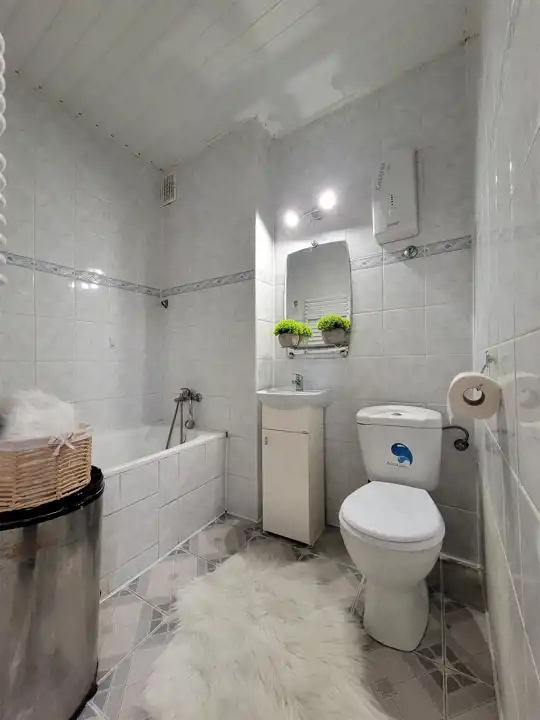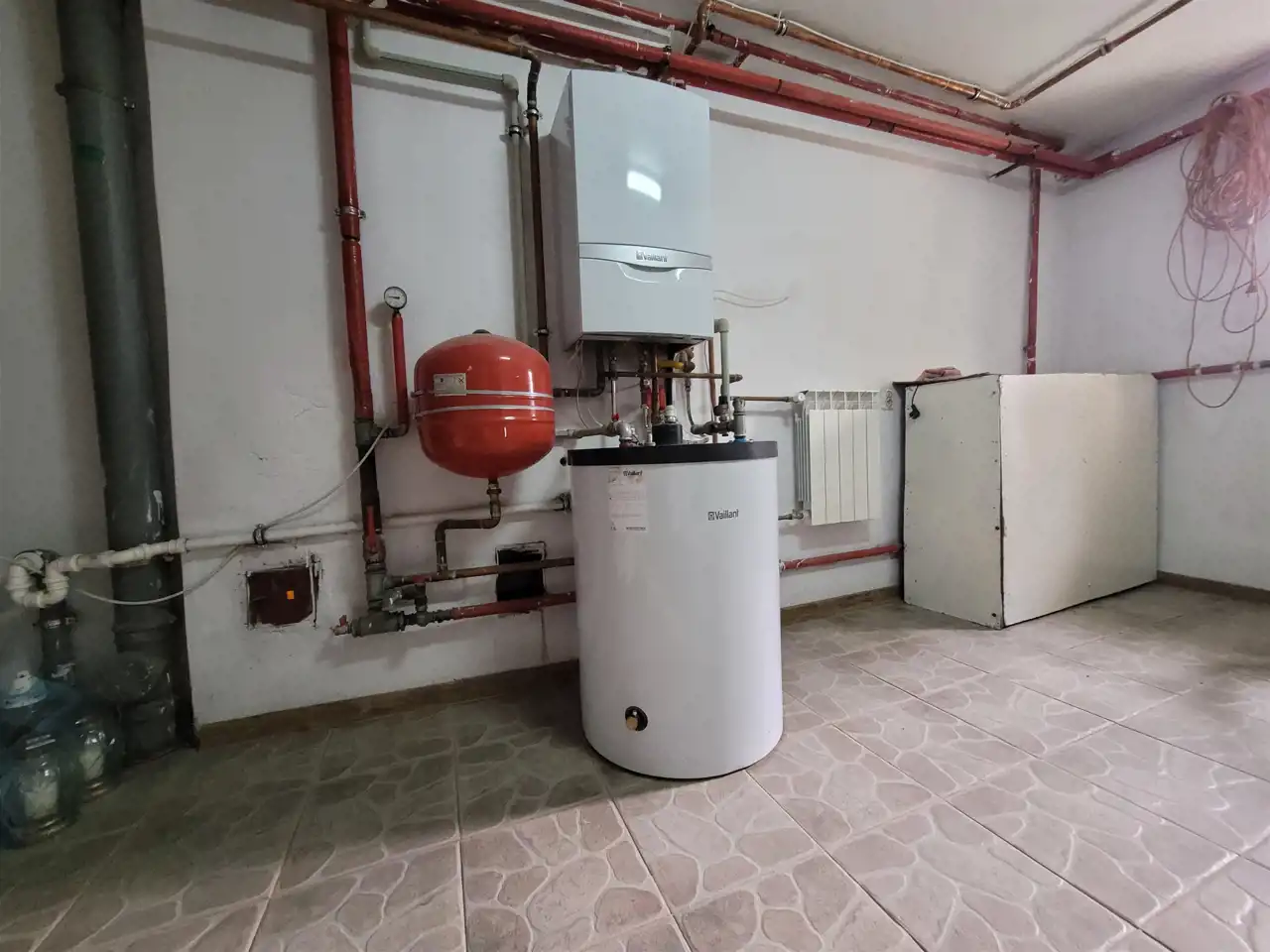 Dom ogrzewany za pomocą instalacji gazowej z wykorzystaniem pieca dwufunkcyjnego wraz ze zbiornikiem na gaz zlokalizowanym na posesji obok domu.