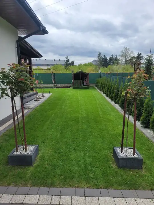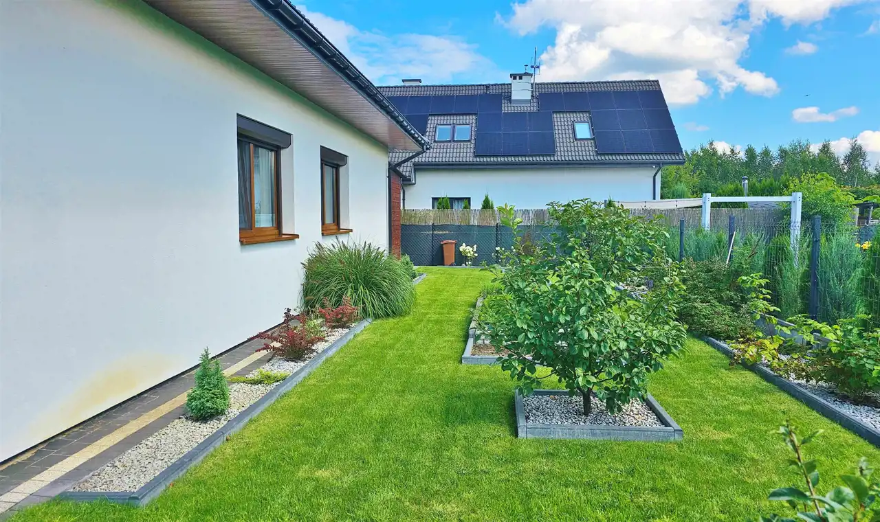 Działka zagospodarowana, zamontowany system nawadniający.