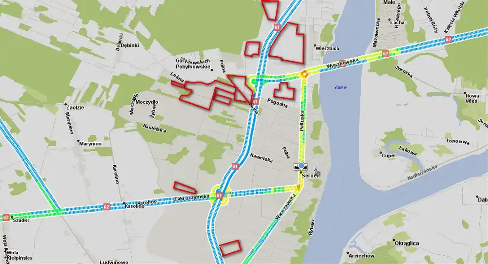 Teren o pow. 9 ha, objęty MPZP - min. działka 800m2, 70% pow. biologicznie czynnej, do 2,5 kondygnacji, intensywność zab. 0,6 przeznaczony pod zabudowę jednorodzinną, usługową, turystyczną do 4 kondygnacji 12m, rekreacyjną - letniskową. Doskonała lokalizacja i ekspozycja przyszłego obiektu, bezpośrednio przy trasie. Rejon Serocka i węzła komunikacyjnego trasy 61 Warszawa - Augustów a trasy 62 Wierzbica - Wyszków.