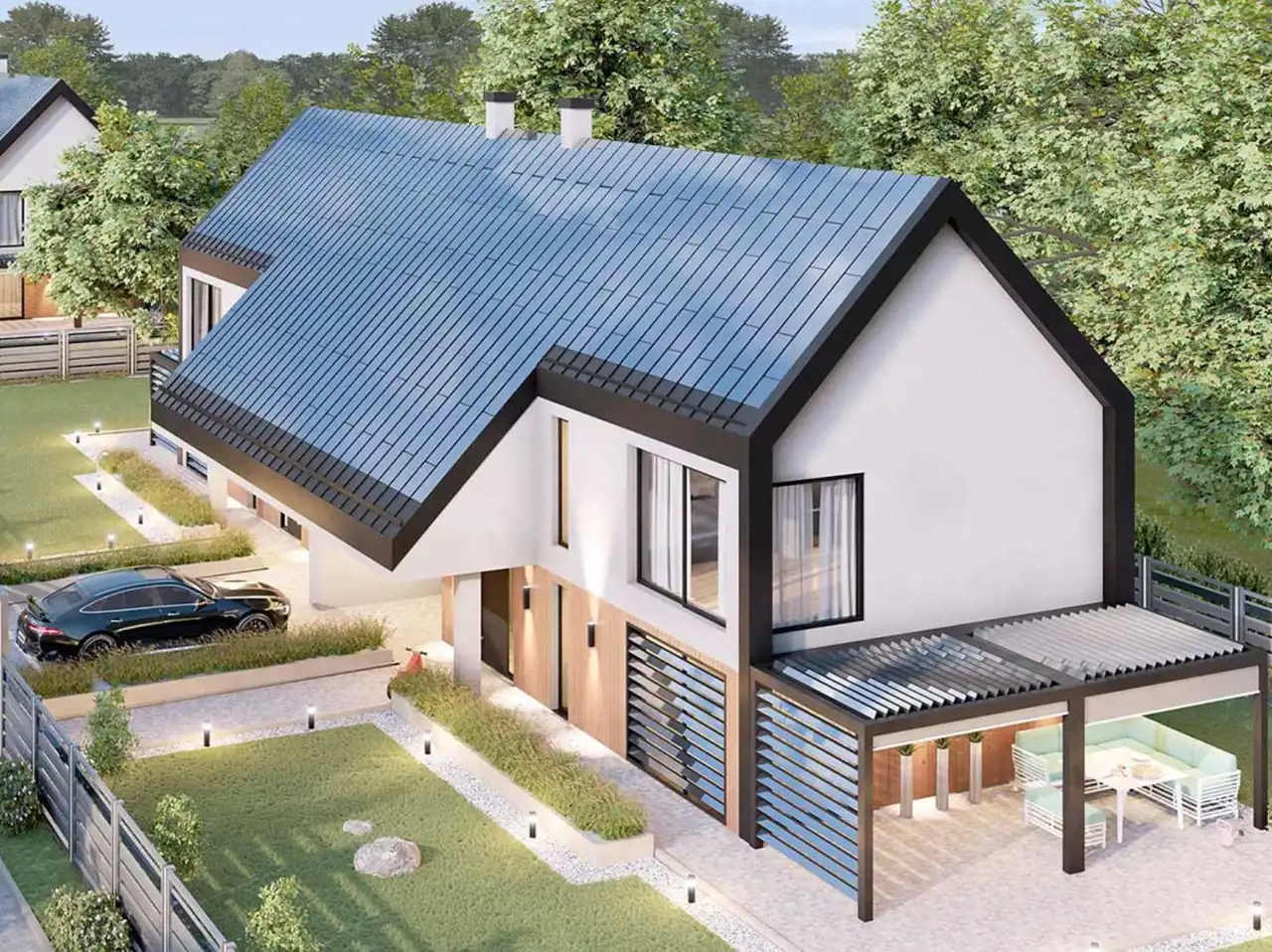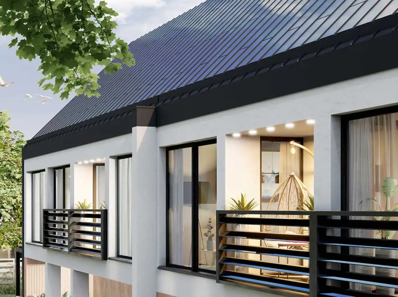 Izolacja termiczna: Domy zaprojektowane są z myślą o maksymalnej efektywności energetycznej, co oznacza zastosowanie wysokiej jakości materiałów izolacyjnych. Dzięki temu wnętrza utrzymują optymalną temperaturę przez cały rok, a koszty ogrzewania zimą i chłodzenia latem są znacząco zredukowane.