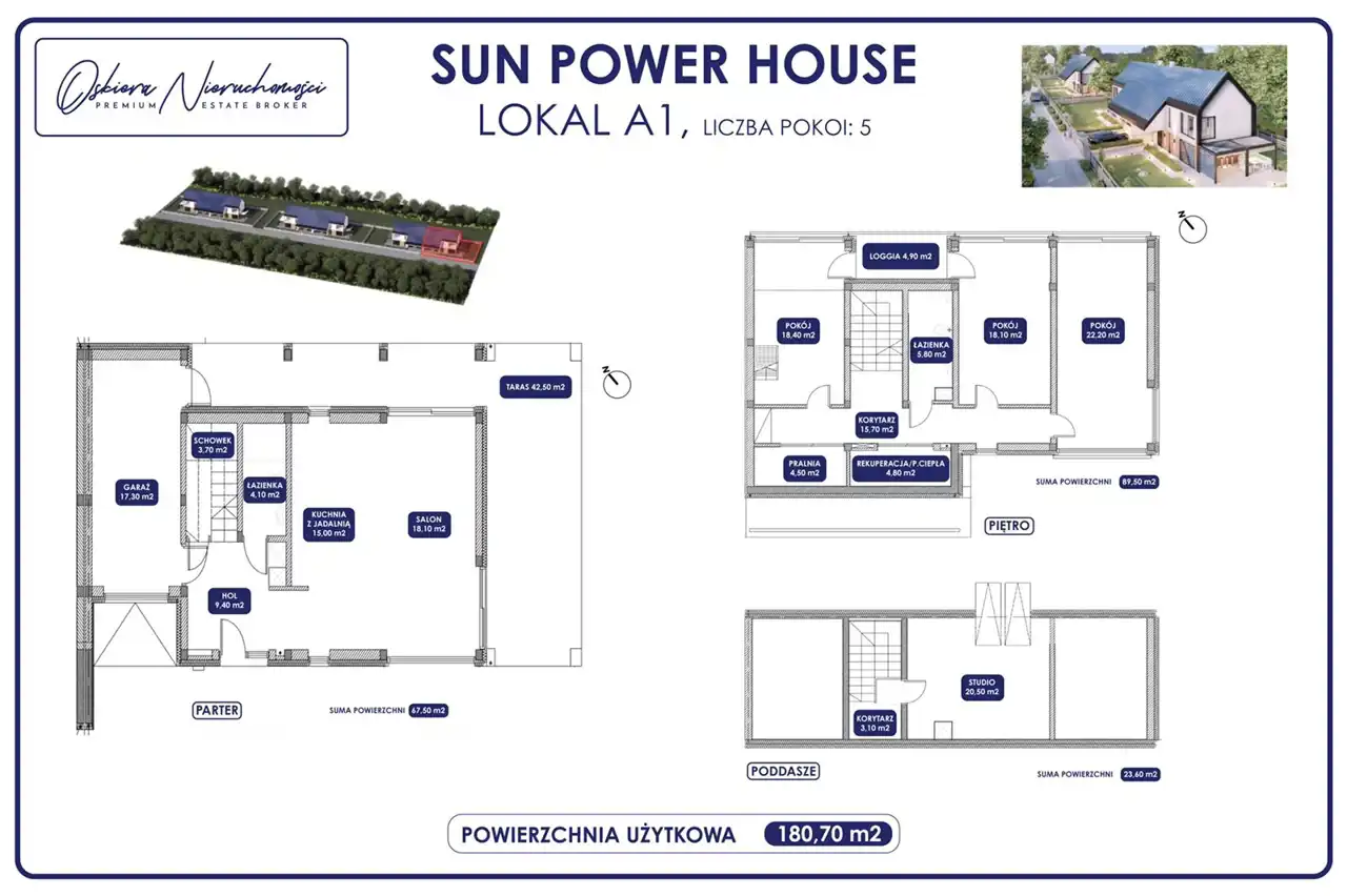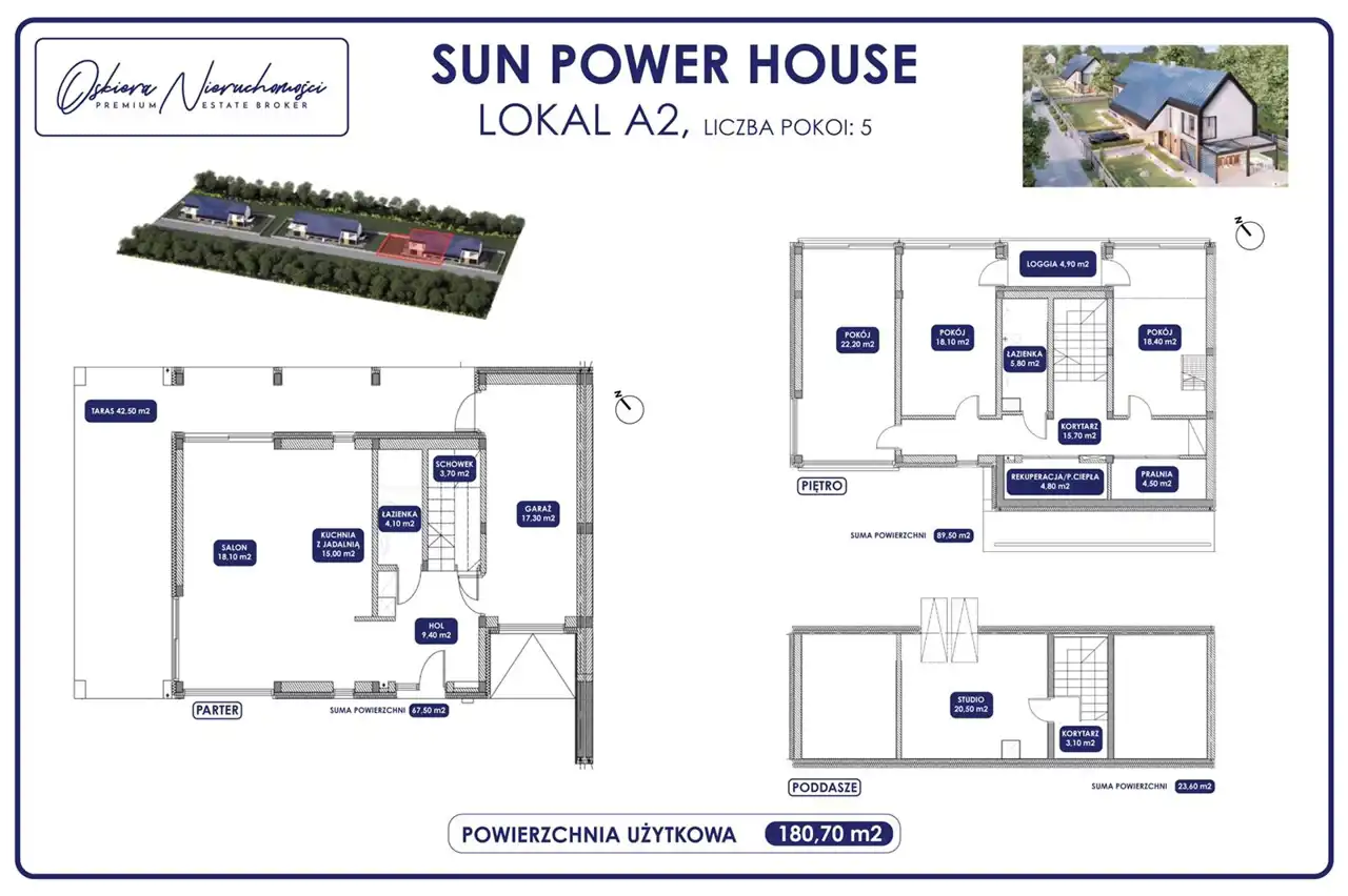 - Powierzchnia domów: Każdy z domów ma powierzchnię 180 m², co daje wiele możliwości aranżacji wnętrz. Przestronne pomieszczenia zapewniają komfort i funkcjonalność dla całej rodziny.