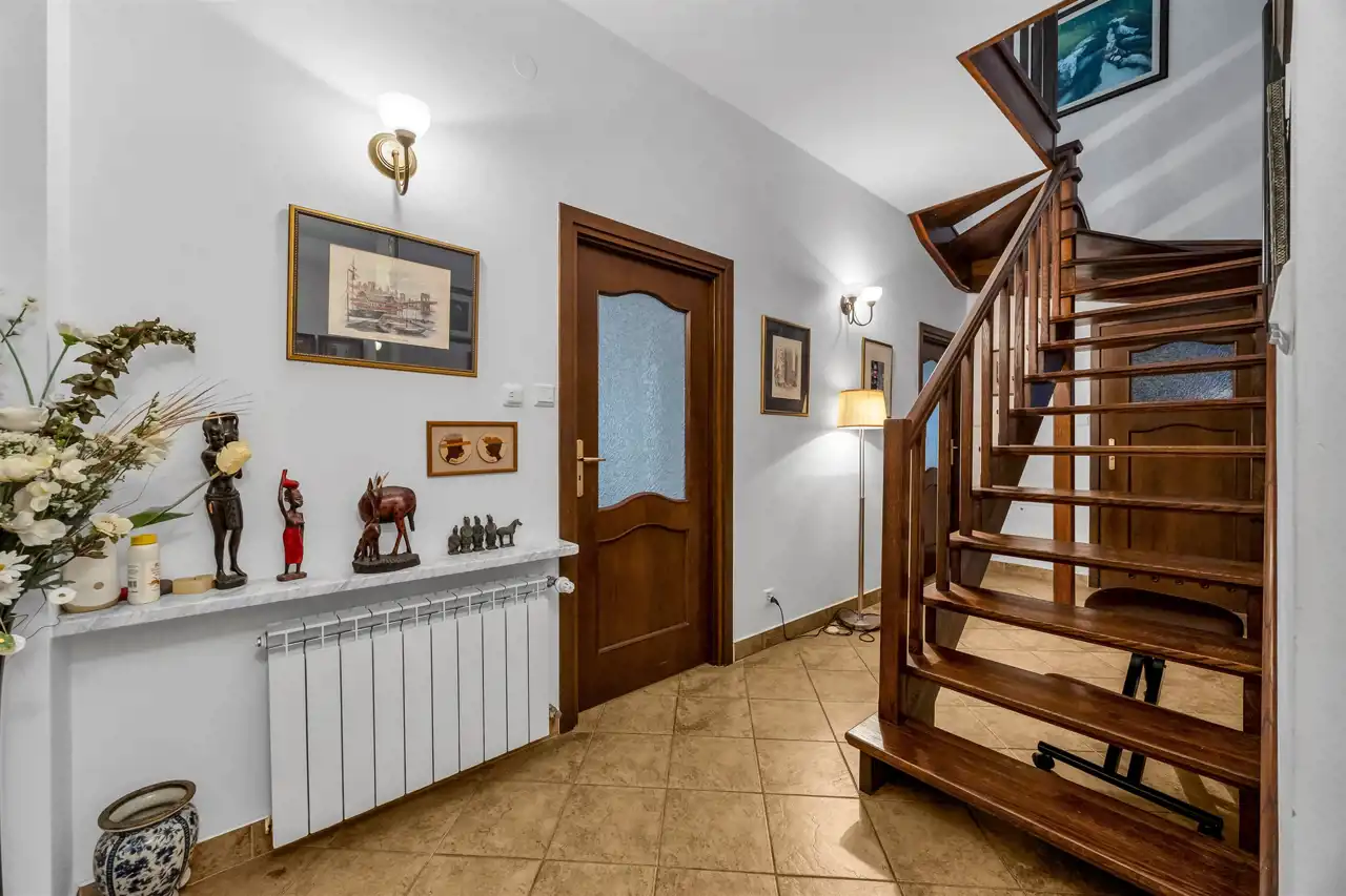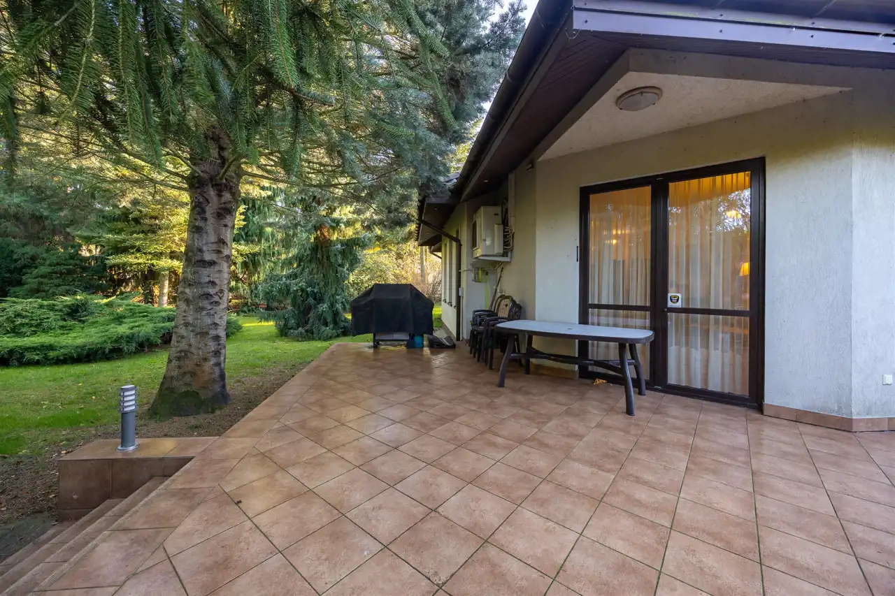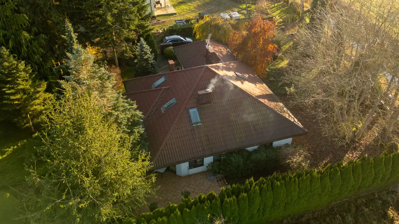 Stan domu, do wprowadzenia ewentualnego odświeżenia. Super układ pomieszczeń, dużo światła i przestrzeni. Prawie 40m salon z częściowo otwartą kuchnią oraz wyjściem na pięknie zagospodarowany taras, oraz bardzo dużą zagospodarowaną bajeczną wręcz roślinnością działkę. Piękne, duże okna, dzięki którym w domu jest dużo światła. Klimatyczny kominek dodający stylu i przytulności, który umili czas spędzany w salonie, a jednocześnie dodatkowo ogrzeje dom. W całym domu zainstalowana klimatyzacja, która zarówno schłodzi w ciepłe dni, jak też szybko dogrzeje dom po dłuższej nieobecności. Cztery pokoje/sypialnie które pomieszczą zarówno dużą rodzinę jak też w razie potrzeby gości.