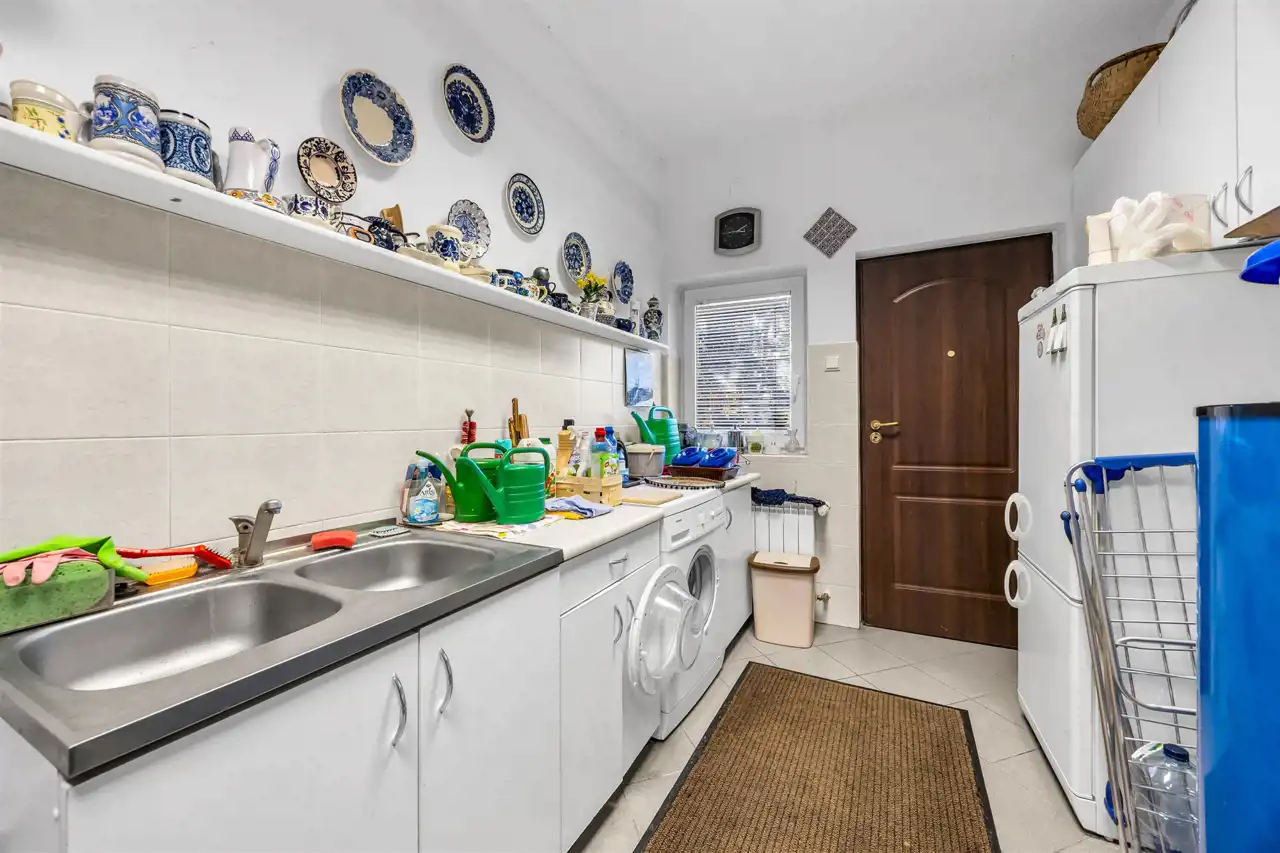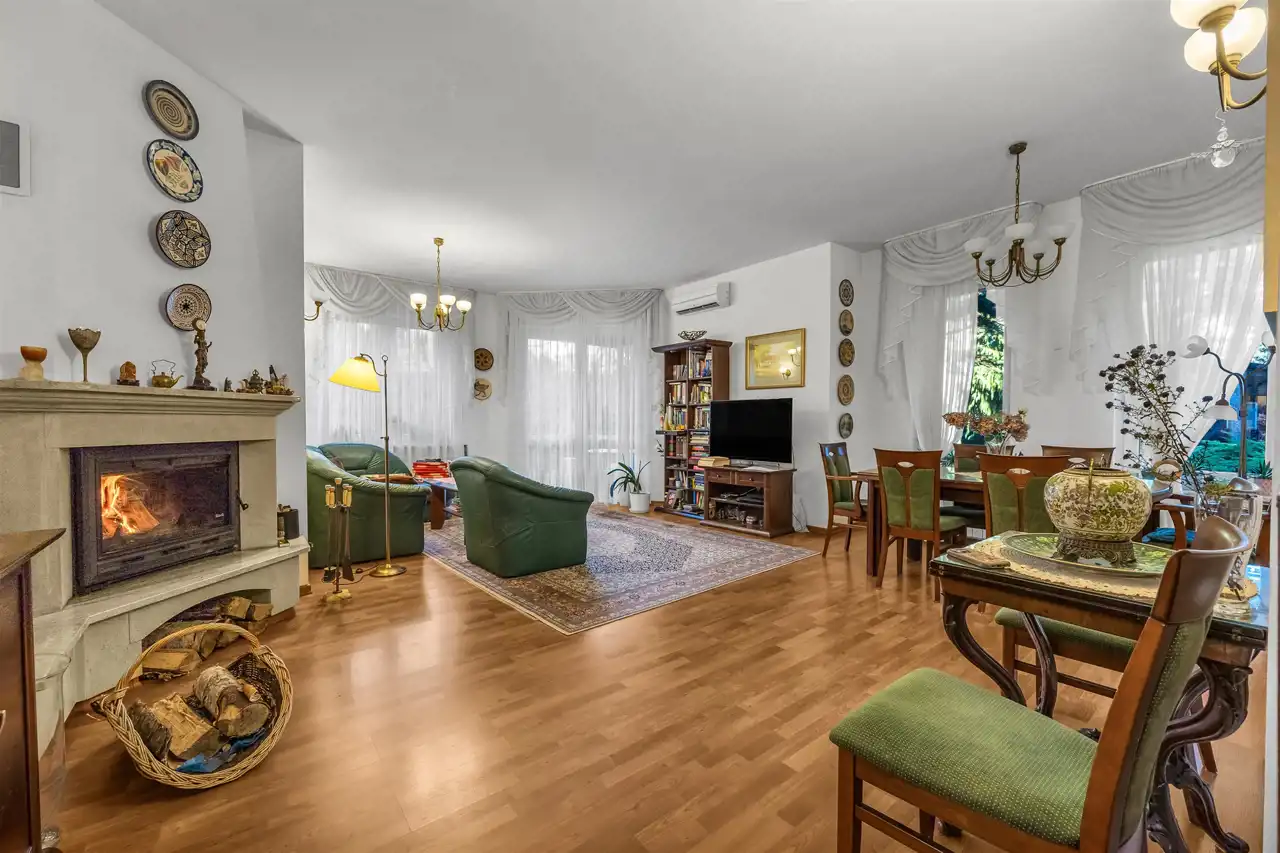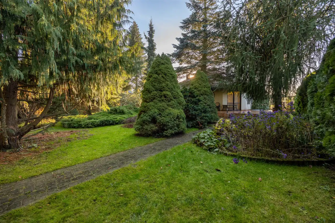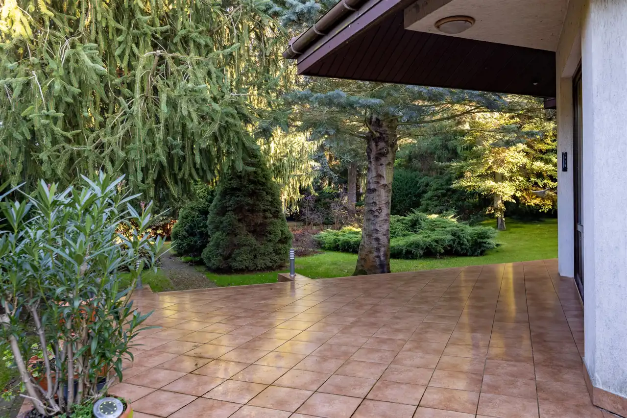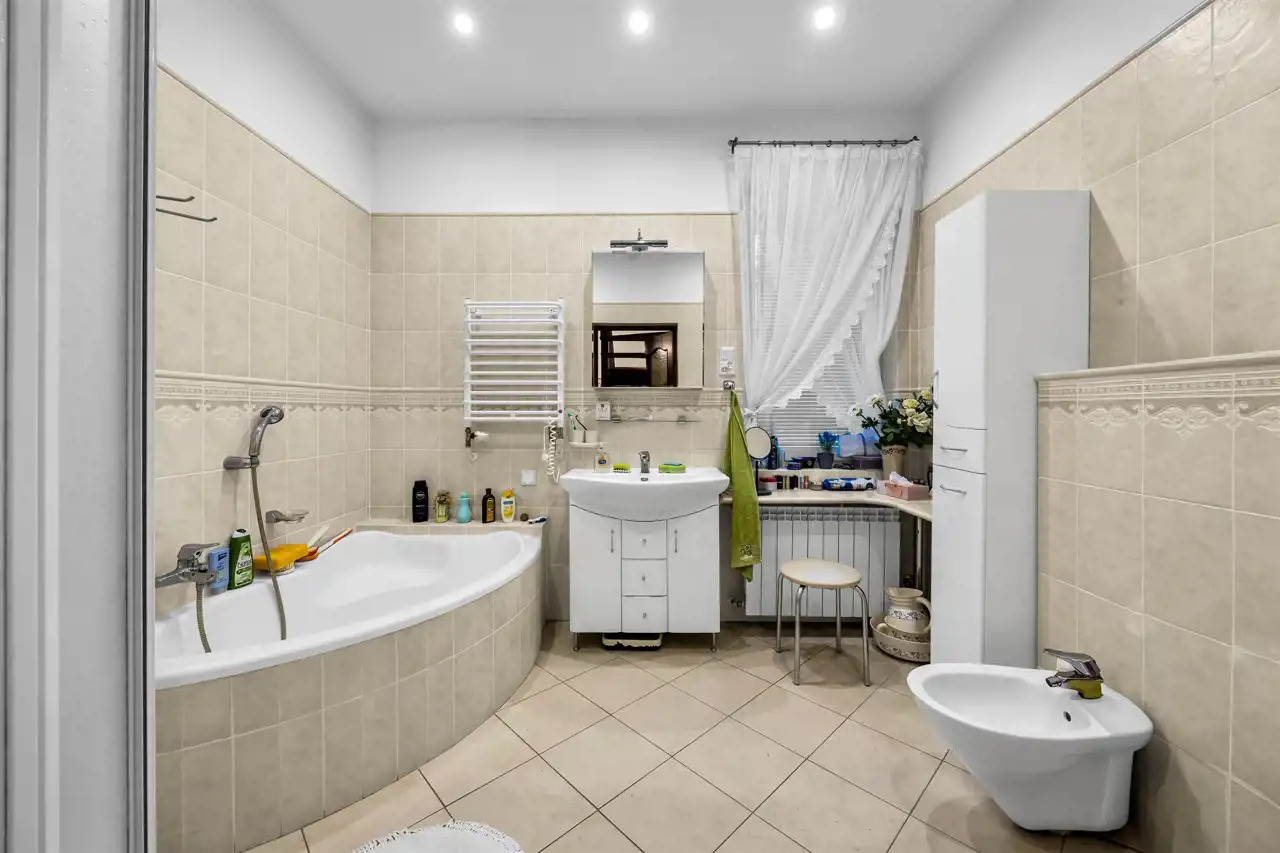 Stan domu, do wprowadzenia ewentualnego odświeżenia. Super układ pomieszczeń, dużo światła i przestrzeni. Prawie 40m salon z częściowo otwartą kuchnią oraz wyjściem na pięknie zagospodarowany taras, oraz bardzo dużą zagospodarowaną bajeczną wręcz roślinnością działkę. Piękne, duże okna, dzięki którym w domu jest dużo światła. Klimatyczny kominek dodający stylu i przytulności, który umili czas spędzany w salonie, a jednocześnie dodatkowo ogrzeje dom. W całym domu zainstalowana klimatyzacja, która zarówno schłodzi w ciepłe dni, jak też szybko dogrzeje dom po dłuższej nieobecności. Cztery pokoje/sypialnie które pomieszczą zarówno dużą rodzinę jak też w razie potrzeby gości.