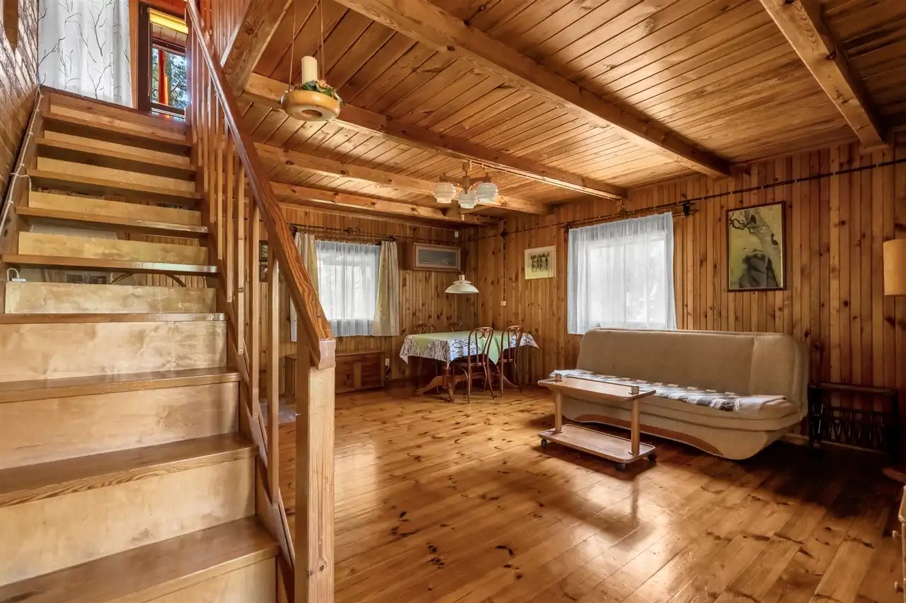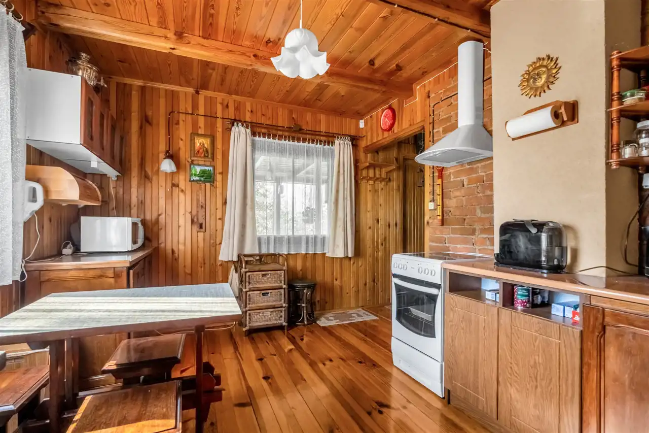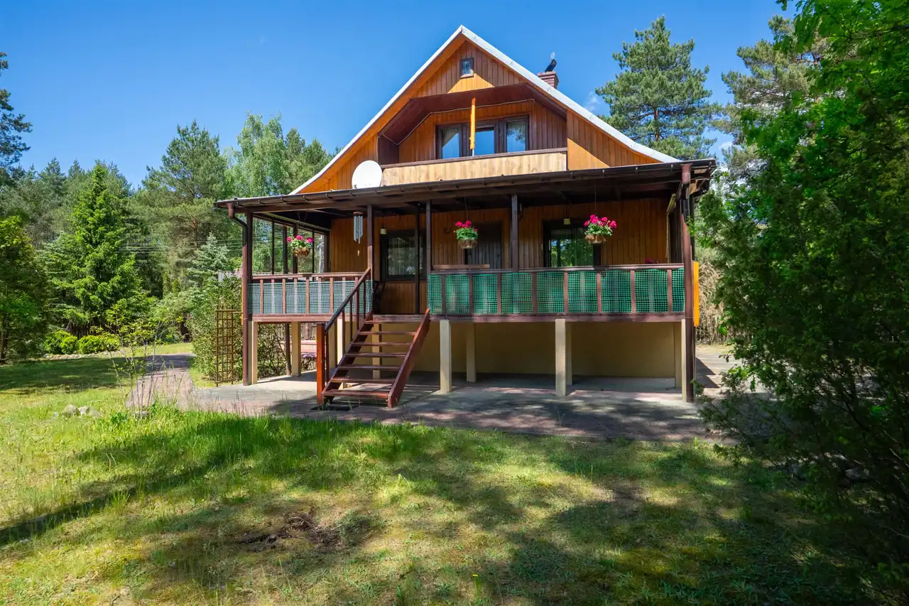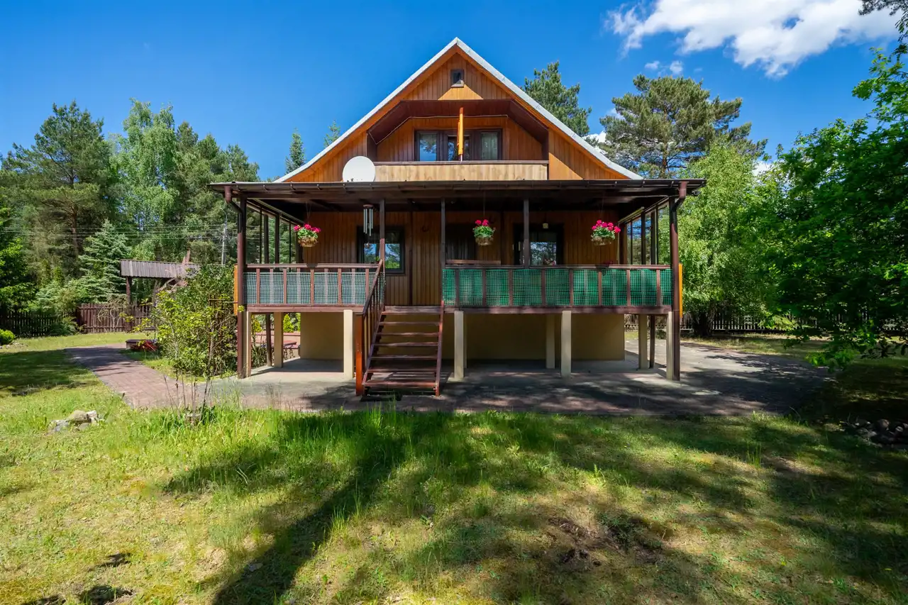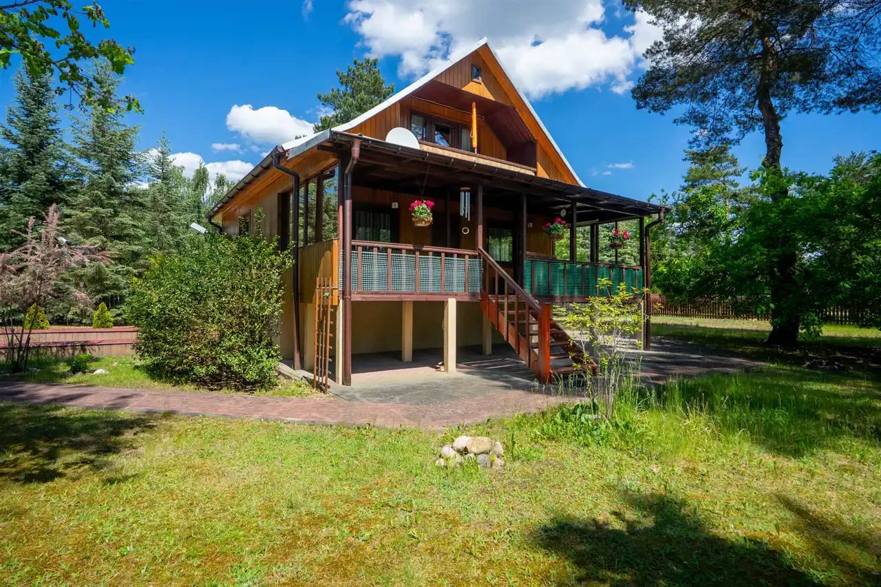 Dom o powierzchni użytkowej 84 mkw, posadowiony na pięknej zagospodarowanej działce ze starodrzewem sosnowym o powierzchni 2090 mkw. Dom jest podpiwniczony, wybudowany w 1991 roku. Parter i poddasze użytkowe wykonane metodą szkieletową z polskiej sosny. W 2016 r. został wykonany remont. Istnieje możliwość zaadoptowania domu na całoroczny, gdyż jest dobrze docieplony.