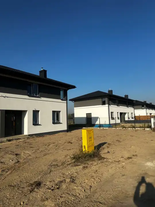 Domy jednorodzinne dwulokalowe w stanie deweloperskim z kształtną działką 450 m2 dla każdego lokalu. Każdy lokal o powierzchni 110,39 m2.