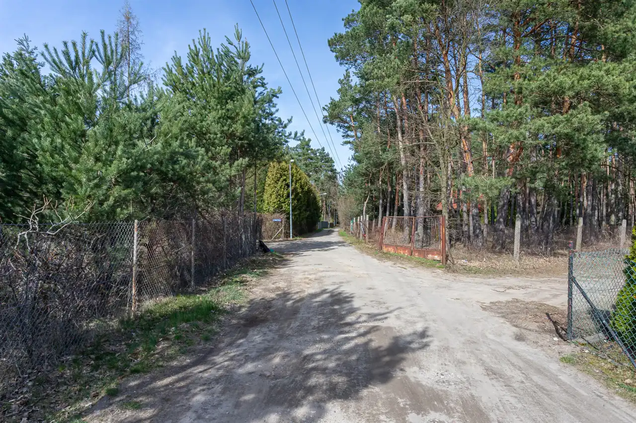 Działka w kształcie długiego prostokąta o wymiarach średnio 23 x 416 m pod zabudowę mieszkaniową lub letniskową. Działka objęta MPZP dopuszcza również usługi nieuciążliwe. Wzdłuż ok 1/3 długości działki została wytyczona i utwardzona droga wewnętrzna o szerokości 6 m (udziały) i nie wchodzi w powierzchnię całkowitą działki. Działka ma dostęp do drogi publicznej od frontu od ulicy Piaskowej. Istnieje możliwość zaprojektowania dojazdu o długości ok 22 m od drugiej strony od ulicy Polnej Róży poprzez ustalenie służebności lub zakup dodatkowego gruntu od sąsiada. Grunt częściowo ogrodzony starym ogrodzeniem do wymiany.