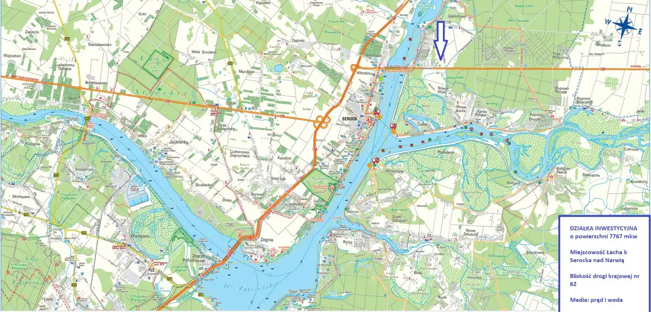 Na sprzedaż działka inwestycyjna o powierzchni 7767 mkw w miejscowości Łacha koło Serocka i Zalewu Zegrzyńskiego w bliskiej odległości drogi krajowej nr 62.