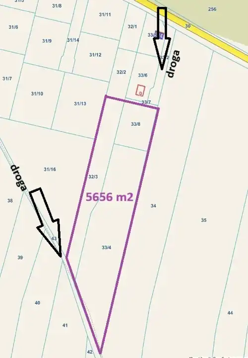 Nieruchomość składa się z 3 działek (32/3, 33/8 i 33/4) które będą scalone. Wg MPZP w ok 1/3% gruntu to teren przeznaczony pod budownictwo jednorodzinne i ok 2/3 % to teren przeznaczony pod użytkowanie rolnicze (z możliwością zabudowy):