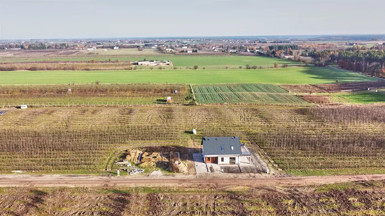 Dom wybudowany w 2025 roku, murowany o dwóch kondygnacjach naziemnych. Z projektu Paren DM-6872-KB z lekkimi zmianami. Na parterze znajduje się przestronny salon z wyjściem na taras i widokiem na las, aneks kuchenny, spiżarnia, łazienka, 1 pokój, kotłownia, wiatrołap. Na piętrze zlokalizowane są trzy sypialnie (dwie z wyjściem na taras), łazienka, pralnia i hol.