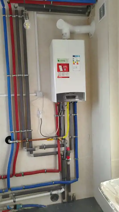 - Ogrzewanie podłogowe z pieca gazowego dwu-fukcyjnego , z regulacją temperatury w każdym pokoju
