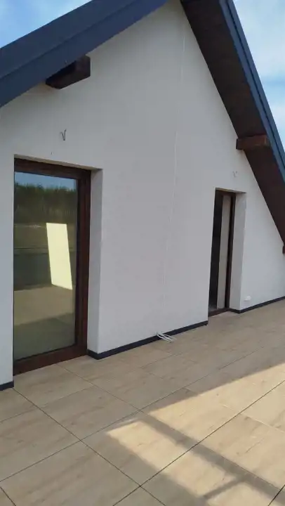 - I piętro: 3 sypialnie, dwie sypialnie z wyjściem na duży taras oraz łazienka, garderoba,