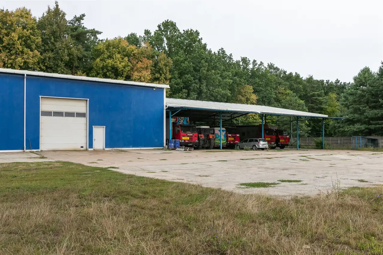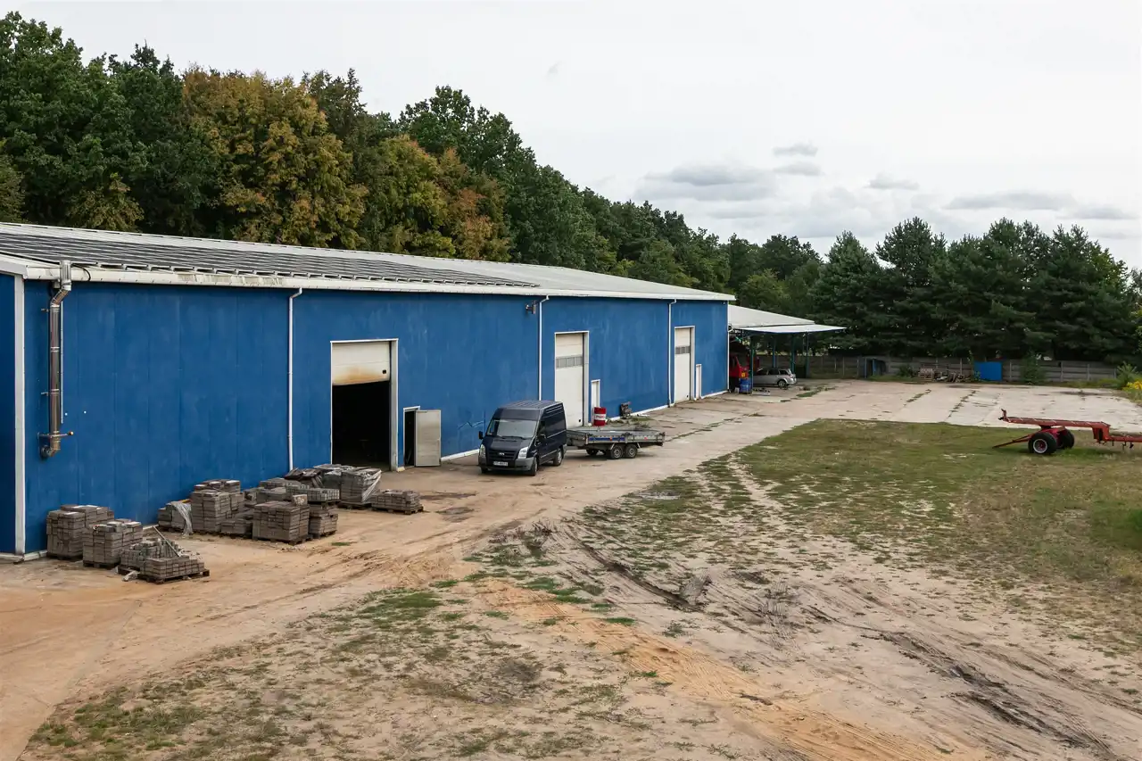 W sąsiedztwie wiata o powierzchni 812 m2 ,oraz 2 mniejsze hale zbudowane z czerwonej cegły, o powierzchni 520m2 i 144m2. Biura i zaplecze socjalne to około 210m2.