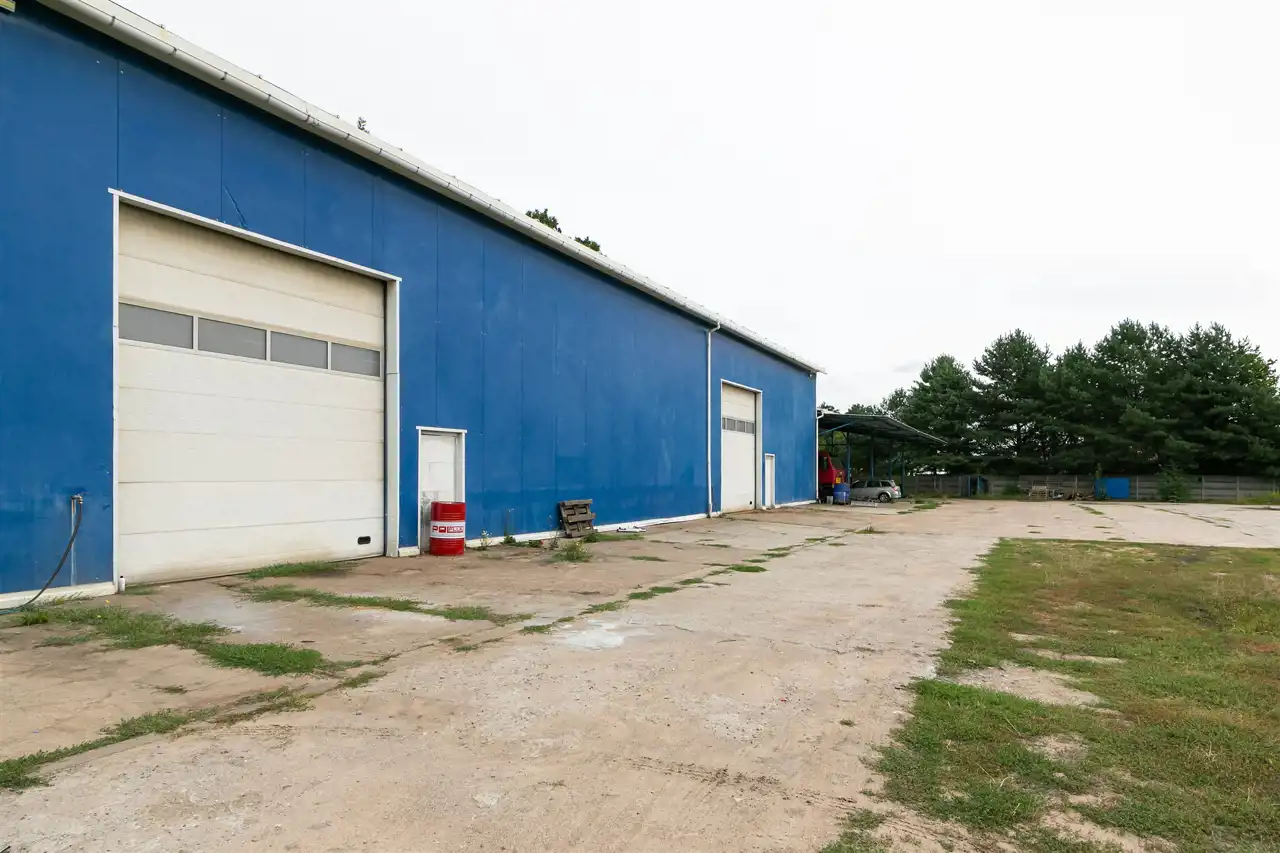 Hala położona jest na dużej, ogrodzonej działce posiada swobodny podjazd dla samochodów ciężarowych.