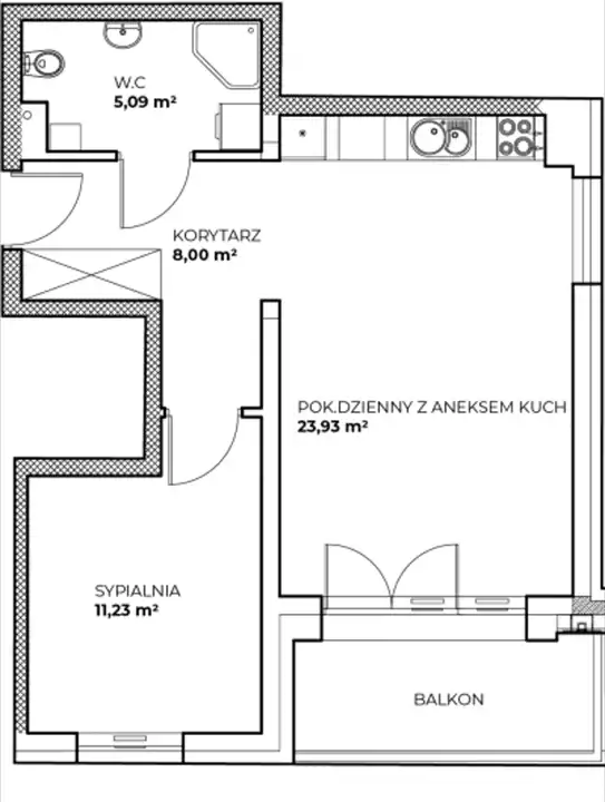 - Charakterystyka mieszkania 48.5 m2, 2 pokoje