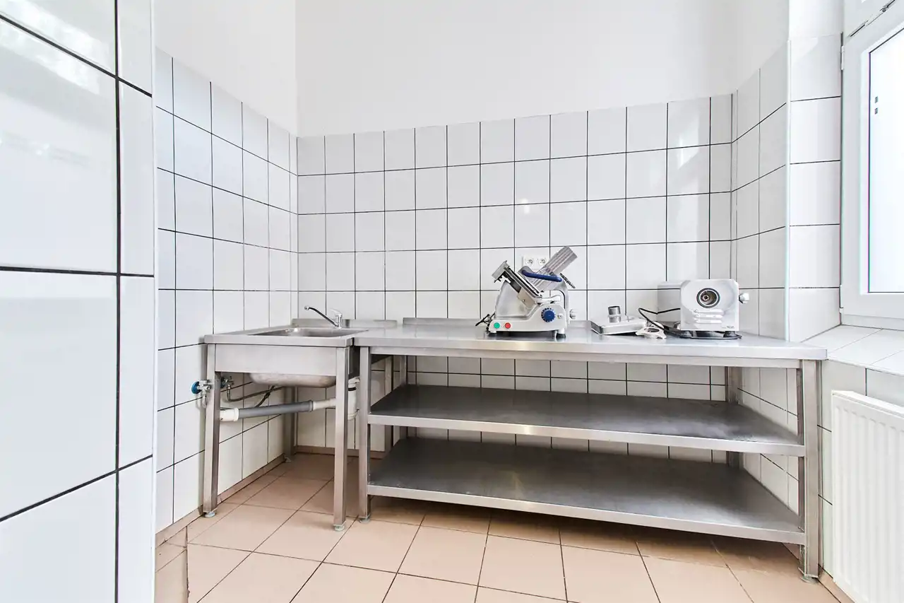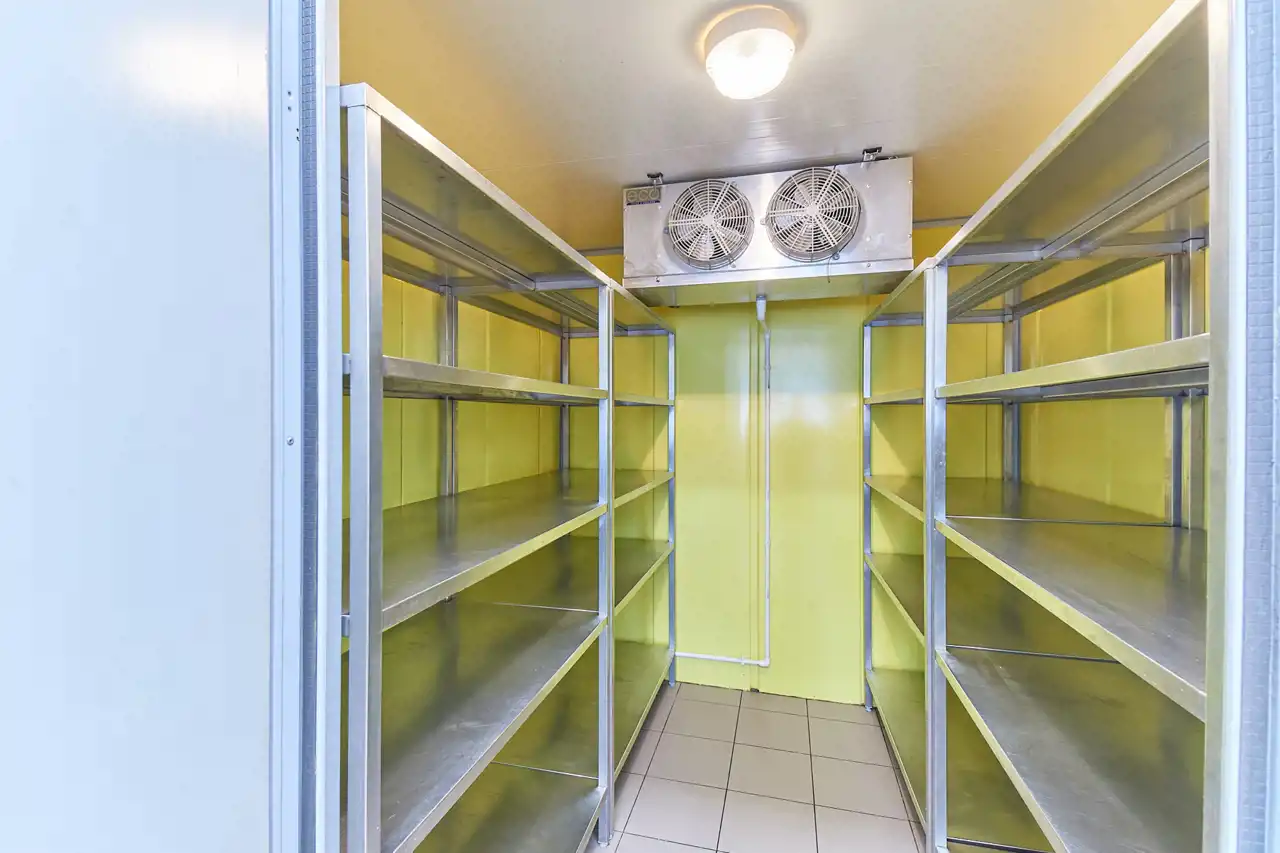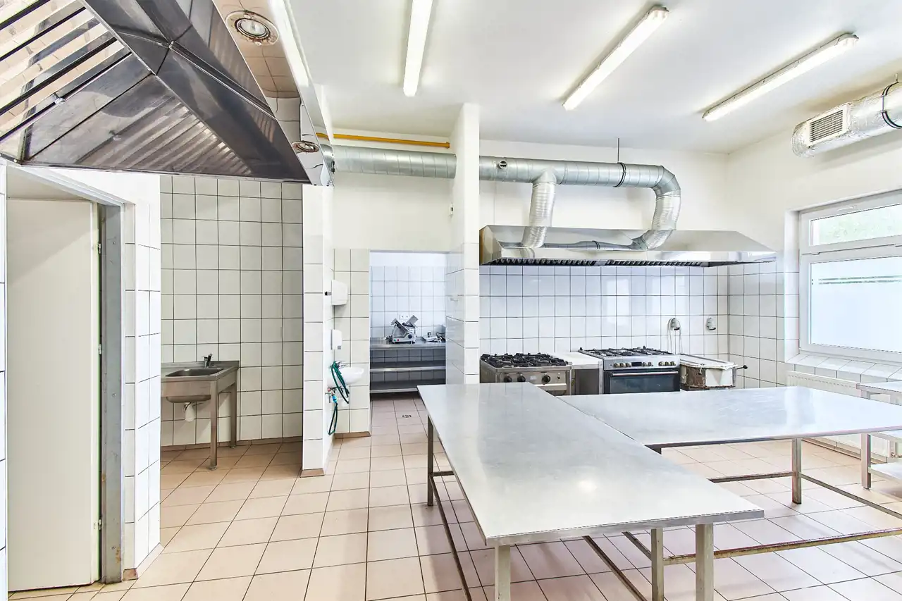 - Kuchnia i zaplecze do magazynowania i przechowywania-chłodnia o powierzchni 160 m2. Kuchnia wyposażona kompletnie w sprzęt elektryczny, gazowy, wentylacyjny umożliwiający łatwą produkcję cateringową;